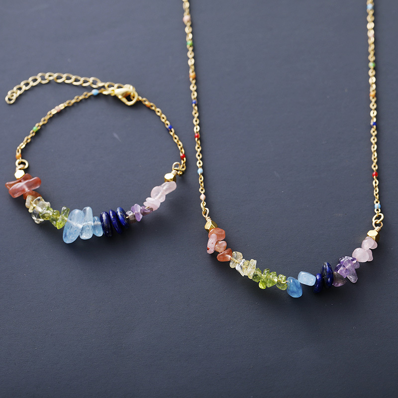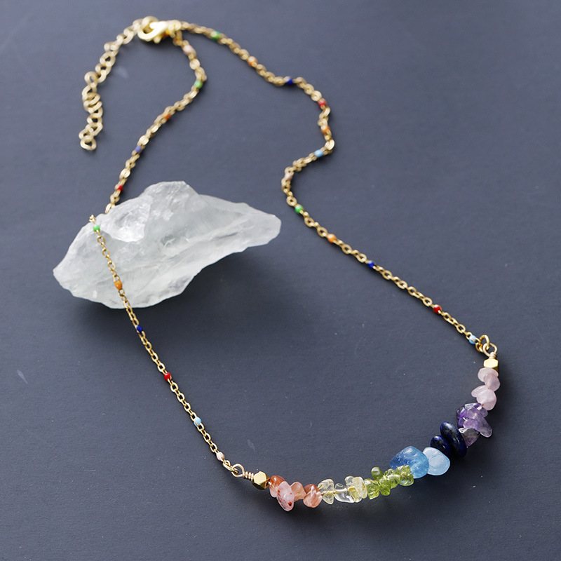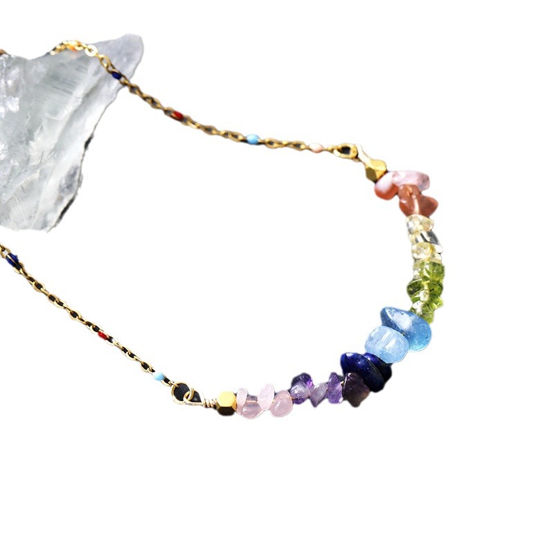 Stylish Resort-Style Natural Crystal 7-Color Handmade Short Necklace Choker