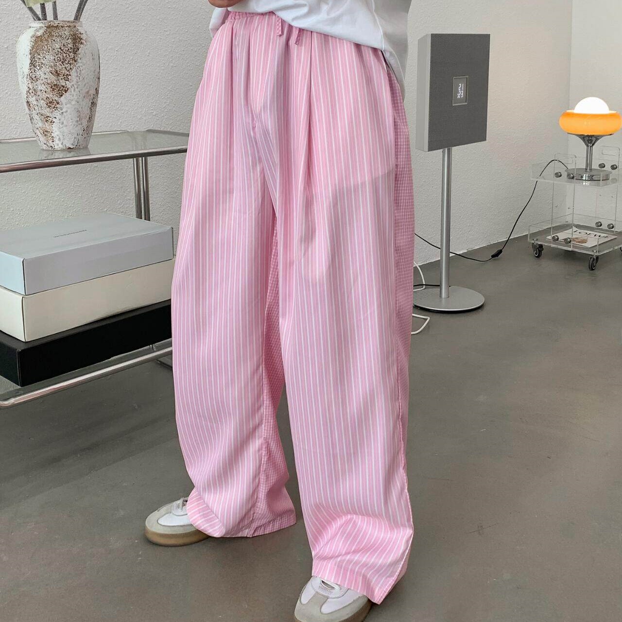Summer Falling Ice Silk Vertical Striped Casual Pants For Men