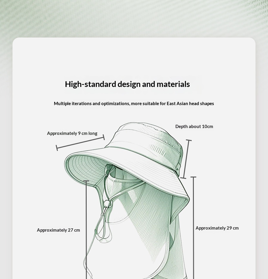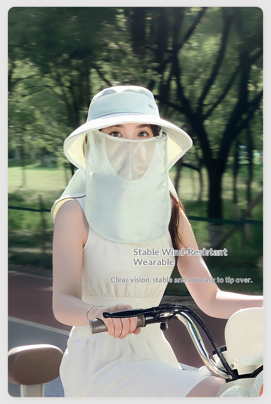 • Lilac Purple – All-Weather Sun Protection/Integrated Neck Guard, Mint Green – All-Weather Sun Protection/Integrated Neck Guard, Deep Black – Full-Range Sun Protection/Integrated Neck Guard, Murky Ink Gray – All-Weather Sun Protection/Integrated Neck Guard, Cherry Blossom Pink – All-Weather Sun Protection/Integrated Neck Guard, Khaki Yellow – Full-Range Sun Protection/Integrated Neck Guard, Light Beige – Full-Range Sun Protection/Integrated Neck Guard