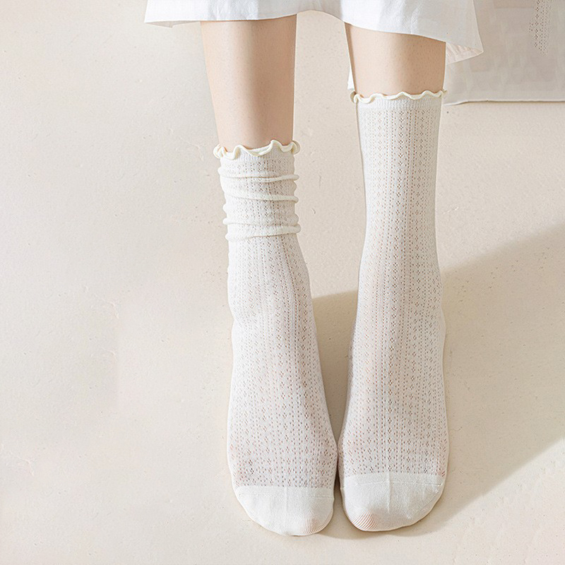 Summer Socks For Children Fungal Edge Thin Mesh Loose Mouth Stacked Breathable Middle Tube Socks