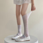 Summer Thin Solid-color Mesh Hollow-out Slouch Socks For Women, JK Retro Slim-fit Knee-high Niche Calf Ballet Knee-high Socks is designed for style, comfort, and everyday use.