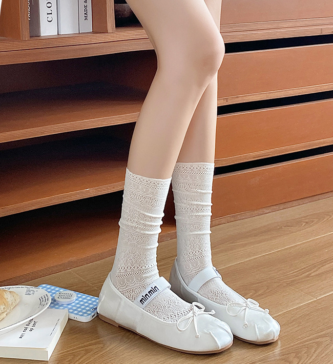 Summer Thin Solid-color Mesh Hollow-out Slouch Socks For Women, JK Retro Slim-fit Knee-high Niche Calf Ballet Knee-high Socks