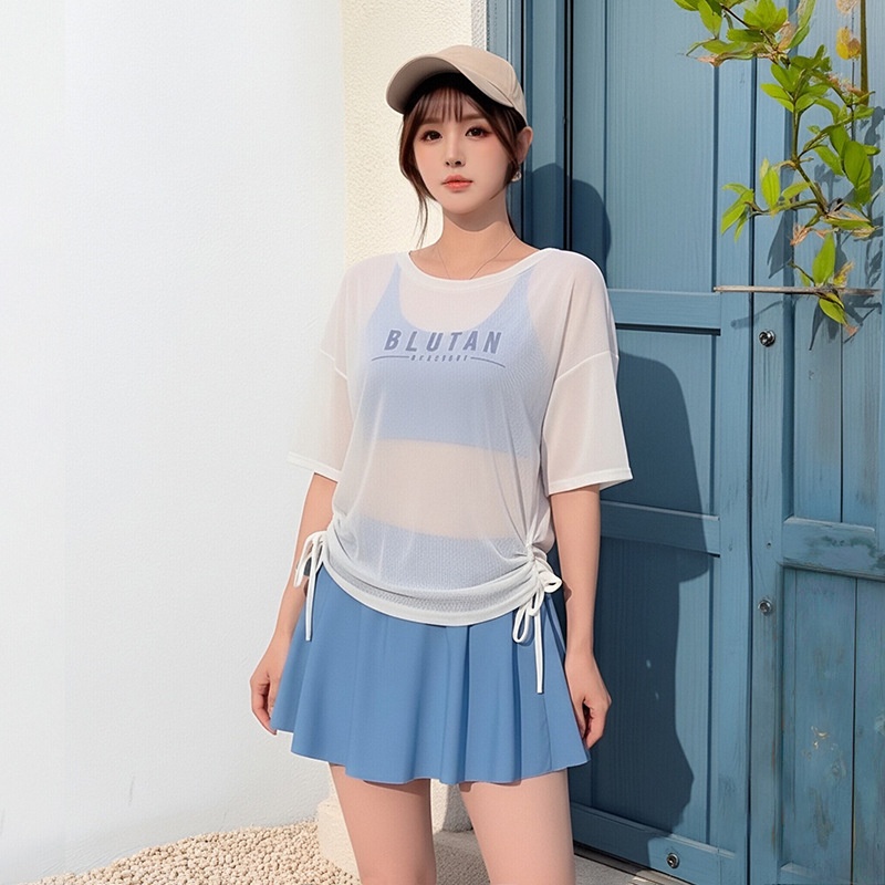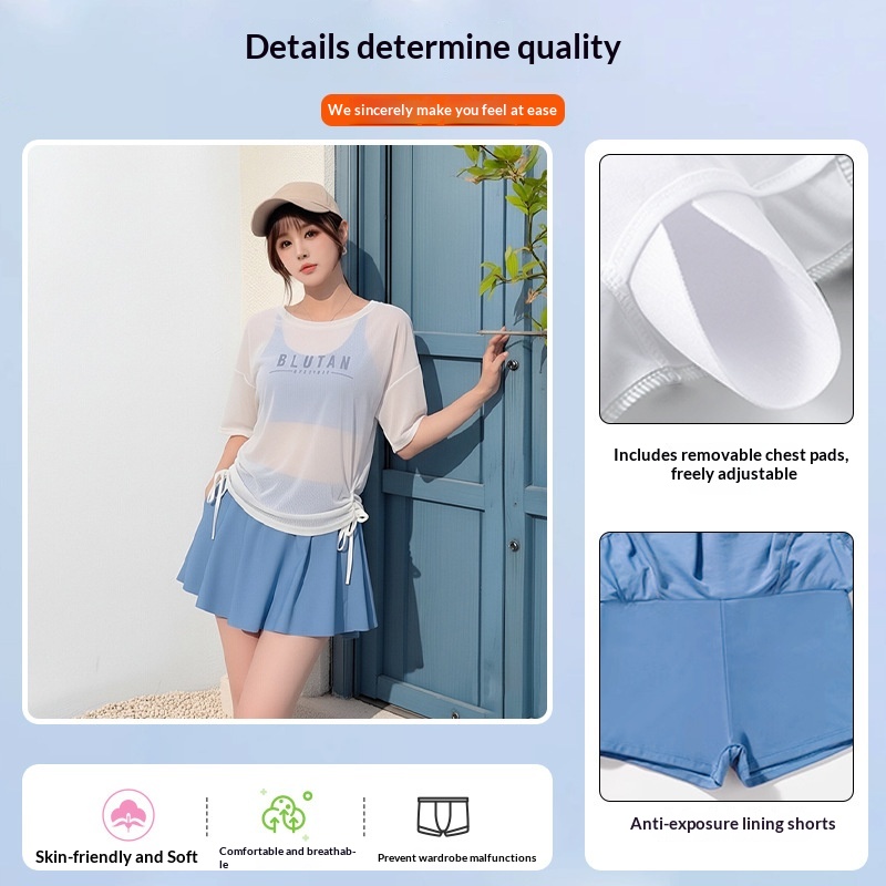 Sun-protective Figure-flattering Tummy-covering Three-piece Split Swimsui