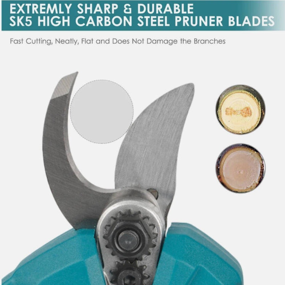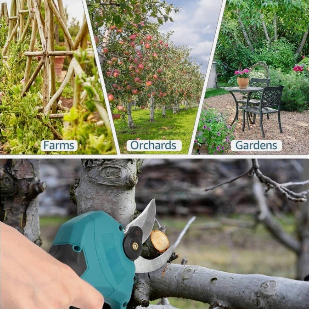 - **Produktspezifikationen:** – Leistung: 600 W – Klingenlänge: 30 mm – Minimaler Schnittradius: 2,5 mm – Öffnungsweite: 30 mm – Hubgeschwindigkeit: 0,3 Sekunden/mm – Gewicht: 21 kg – Schneidleistung: 1,2 – Akkukapazität: 1300 mAh – Schnittbreite: 2,5 mm **Lieferumfang:** – Akku x 1 – Schutzhandschuhe x 1 Paar – Ladegerät mit EU-Stecker x 1 – Werkzeugschlüssel x 1 – Bedienungsanleitung x 1 – Astschere x 1 **Produktspezifikationen:**- Leistung: 600 W- Klingenlänge: 30 mm- Minimaler Schnittradius: 2,5 mm- Öffnungsweite: 30 mm- Hubgeschwindigkeit: 0,3 Sekunden/mm- Gewicht: 21 kg- Schneidleistung: 1,2- Akkukapazität: 1300 mAh- Schnittbreite: 2,5 mm **Lieferumfang:**- Akku x 1- Schutzhandschuhe x 1 Paar- Ladegerät mit EU-Stecker x 1- Werkzeugschlüssel x 1- Bedienungsanleitung x 1- Astschere x 1 **Produktbeschreibung:**Diese elektrische Astschere verfügt über einen leistungsstarken, bürstenlosen Motor, der ein schnelles Beschneiden von Ästen ermöglicht. Sie schneidet mühelos Äste mit einem Durchmesser von unter 25 mm. Dank der einfachen Bedienung können Sie jederzeit und unkompliziert Äste beschneiden. Die Sicherheitsfunktionen wurden optimiert: Um versehentliche Verletzungen – insbesondere bei Kindern – zu vermeiden, müssen Sie vor der Nutzung der Schere zunächst zweimal den Auslöser betätigen und den Akkuschalter einschalten. Zum Entfernen des Akkus muss die Schere ebenfalls in einen sicheren Zustand gebracht werden. Achten Sie darauf, den Schalter nicht versehentlich zu drücken. Die Scherenklingen sind aus Wolframstahl geschmiedet; ihre gebogene Form greift die Äste fest, während die flache Schnittfläche Beschädigungen an den Pflanzenästen verhindert. Dank der Schutzklasse IPX5 bietet das Gerät eine hervorragende Wasserbeständigkeit. Das ergonomische Design mit Stoßdämpfung und rutschfester Oberfläche sorgt dafür, dass Sie auch bei längerem Einsatz nicht ermüden. **Anwendungsbereiche:**- Gärten- Parks- Landwirtschaftliche Betriebe- Ranches- Obstplantagen Vielseitig einsetzbar zum Beschneiden von Ästen, Sträuchern, Pflanzen usw. – die ideale Wahl für Gärtner, Landwirte und Gartenliebhaber.