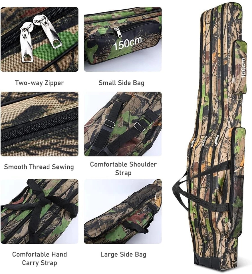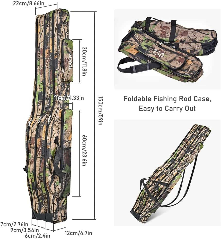 1,5 m lange, dreilagige, faltbare Angeltasche mit großem Bauch, doppelte Schultertasche für Angelruten, Outdoor-Aufbewahrungsset für Angler ⭐【Angeltasche mit großer Kapazität】 Die Größe der Angelgerätetasche beträgt 150 cm, die groß genug ist, um alle Ihre Angelgüter aufzunehmen. Es enthält 3 Hauptfächer, um Ihre Angelruten zu halten; 2 kleine Seitentaschen und 1 Netztasche können Angelschnur, Rolle, Köder, Floatbox, kleine Gegenstände und andere Angelgeräte halten. ⭐【Tragbare Angelrutentasche】 Diese 2 in 1 Angeltasche mit Handtragegurt und verstellbarem Schultergurt, der für Schulter- und Handtragen geeignet ist. Darüber hinaus ist diese Angeltasche faltbar, sie kann bequem in Ihrem Rucksack oder Ihrer Aufbewahrungsbox aufbewahrt werden, was uns hilft, Platz zu sparen. ⭐【Langlebig und wasserdicht】 Die Angelrutentasche besteht aus 600D Polyester Oxford Gewebe, es ist reißfest und abriebfest. Interne wasserdichte Beschichtung kann Regentropfen und Meerwasser standhalten, was Ihr Angelgerät trocken hält. Zartes und geschmeidiges Nähhandwerk verleiht seiner Haltbarkeit und Schönheit außerordentlich. ⭐【Einfacher Zugriff und Organisation】 Der Angelrucksack verfügt über einen doppelt verriegelnden Verschluss und ein weit öffnendes Design, mit dem Sie bequem auf Angelausrüstungszubehör zugreifen, es aufbewahren und organisieren können. Diese Reißverschlüsse sind glatt und robust, wodurch Sie Fächer leicht öffnen und schließen können. ⭐【Ideale Wahl für Angelliebhaber】 Angelgerätetasche kann auf dem Boot, Seeufer, Flussufer und Meer weit verbreitet sein. Es ist ein professionelles Angelgeschenk für Papa, Opa und Freunde, die Angelliebhaber sind. Es ist auch eine gute Wahl für Geburtstag, Weihnachten und andere Feiertage. • •