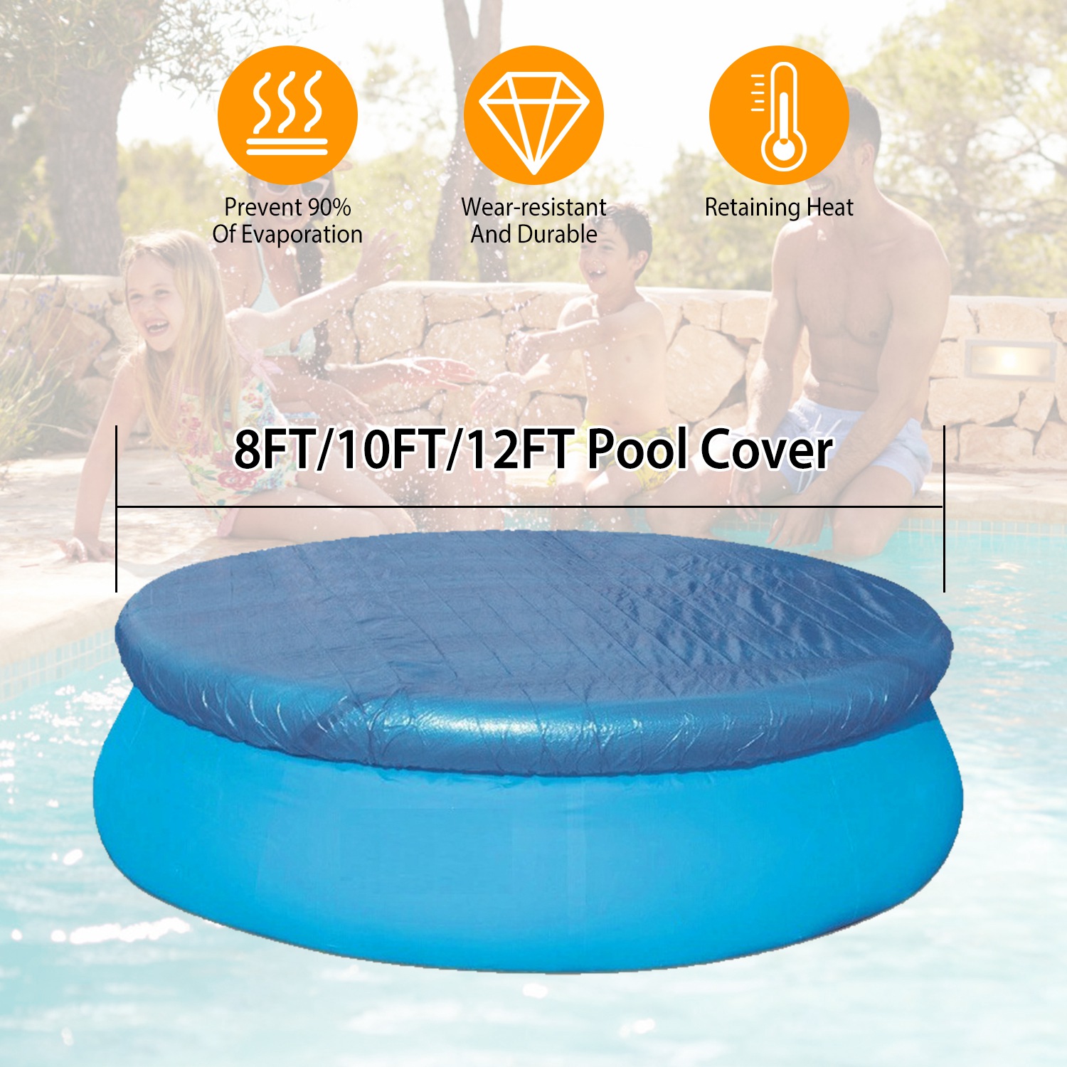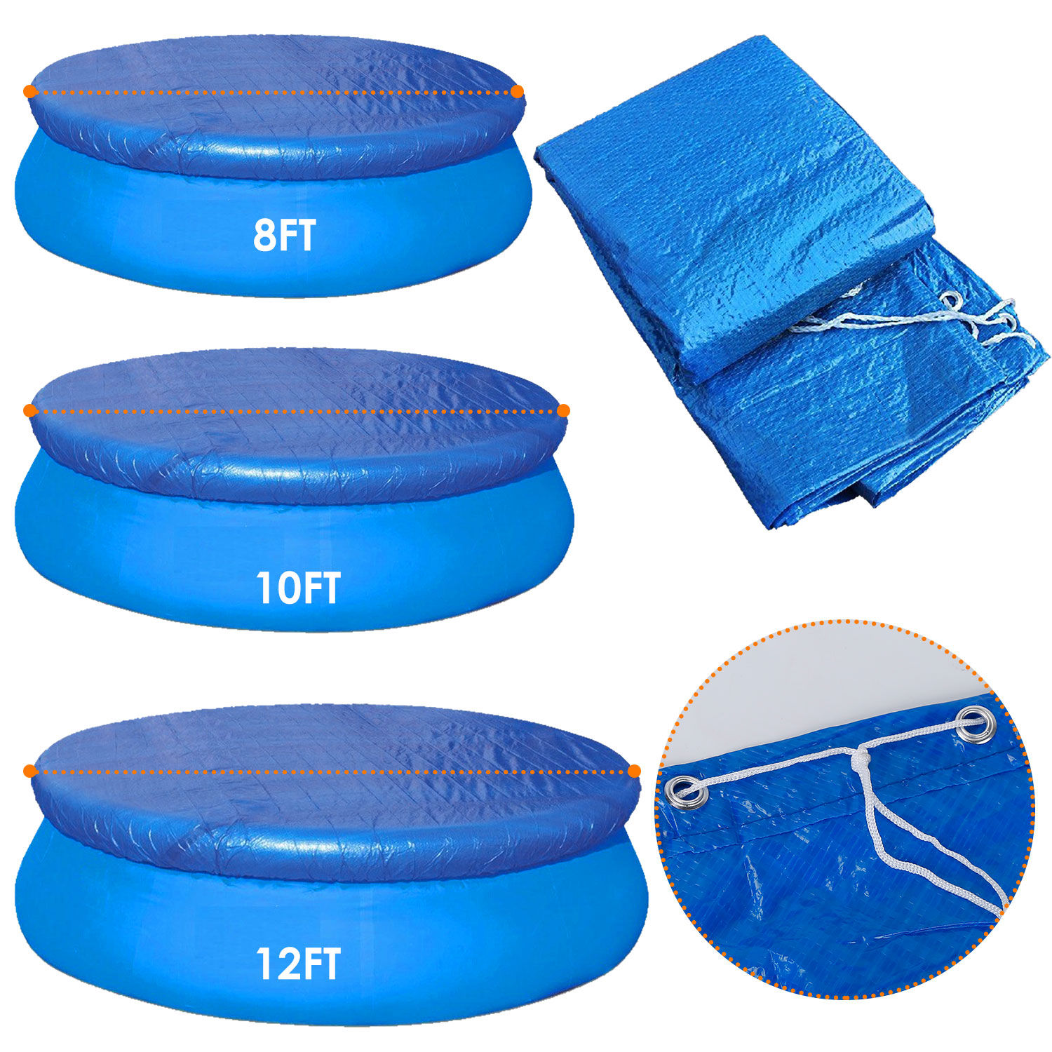 • *Easy To Install*:Just choose the right size for your pool,with 8ft,10ft,and 12ft for choice. Put it on the pool and fasten it through the ropes on the edge.