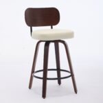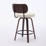 Swivel Bar Stools Set Of 2, 26 Upholstered Faux Leather Counter Height Barstools With Walnut Back & Bentwood Legs, Mid Century Modern Bar Chairs Island Stools For Kitchen Counter, Beige PU, SW1864BG