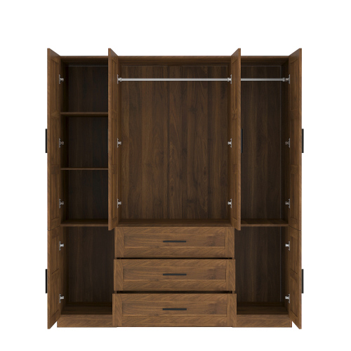 Tall Bedroom Armoire, 6 Door Armoire Wardrobe Closet With Big 3 Drawers, Wooden Freestanding Bathroom Armoire Cabinet With Shelves And Hanging Rod, Clothes Storage Organizer For Bedroom, Guest Room