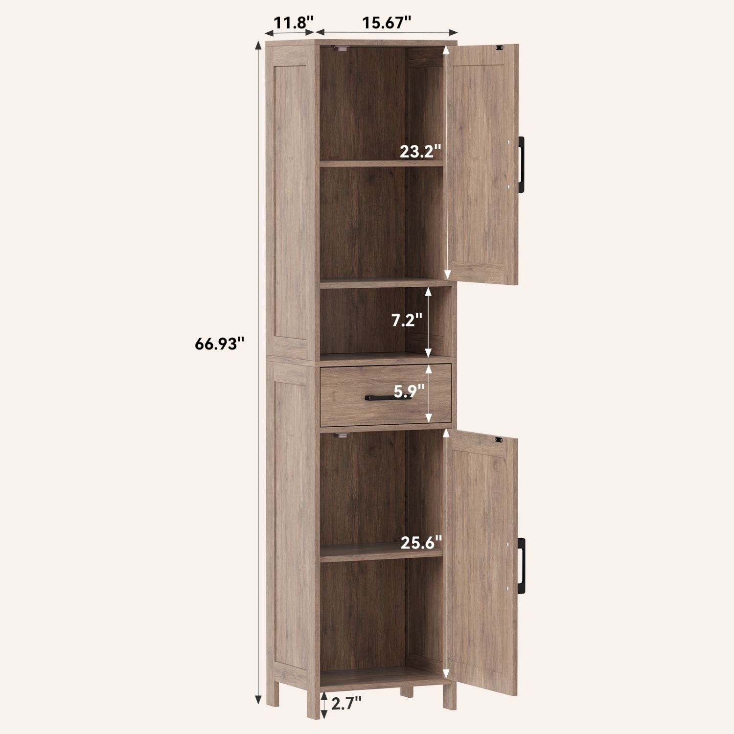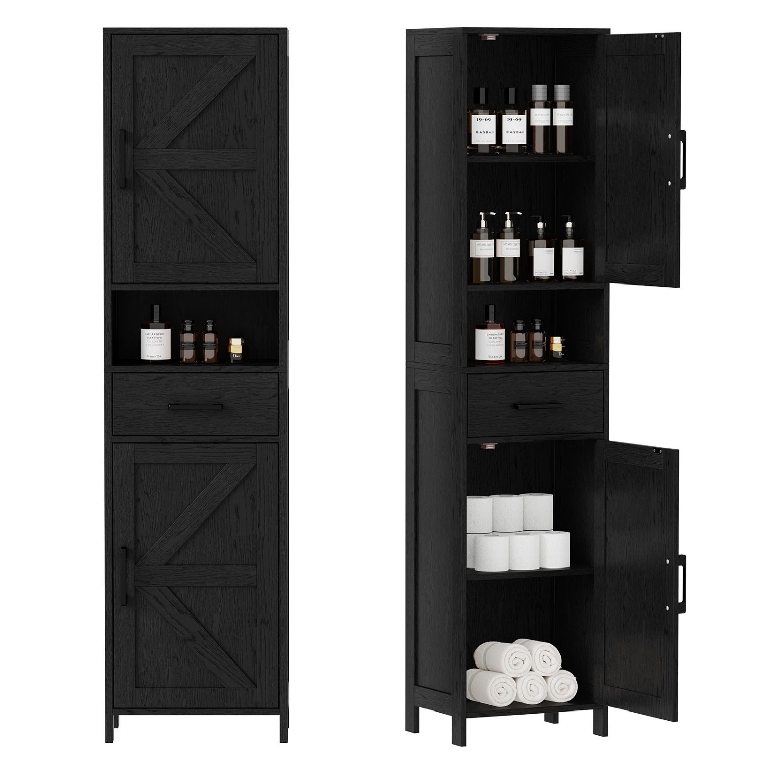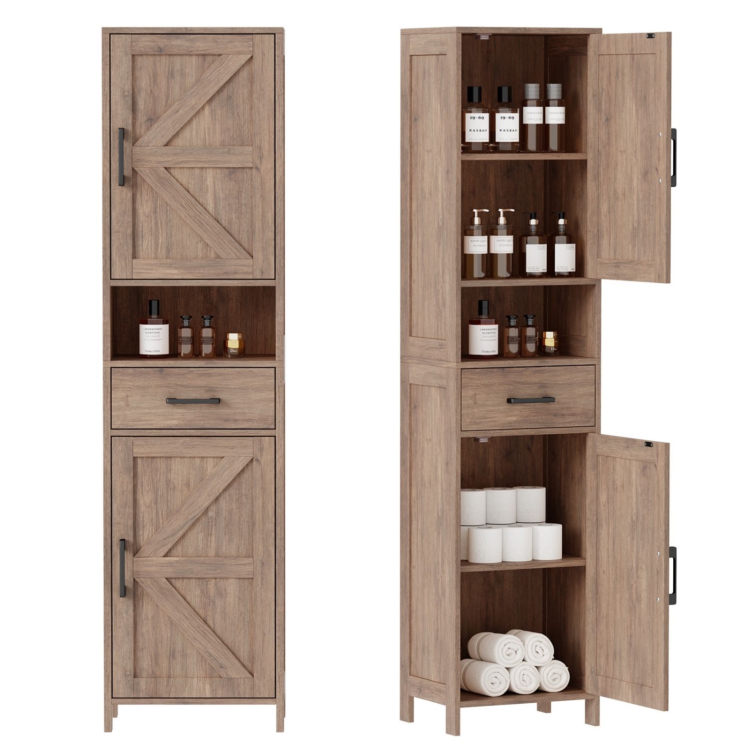 Tall Narrow Storage Cabinet, 2 Barn Doors With Drawer, Adjustable Shelves, Floor Cabinet For Bathroom, Living Room, Entryway, Kitchen is designed for style, comfort, and everyday use.