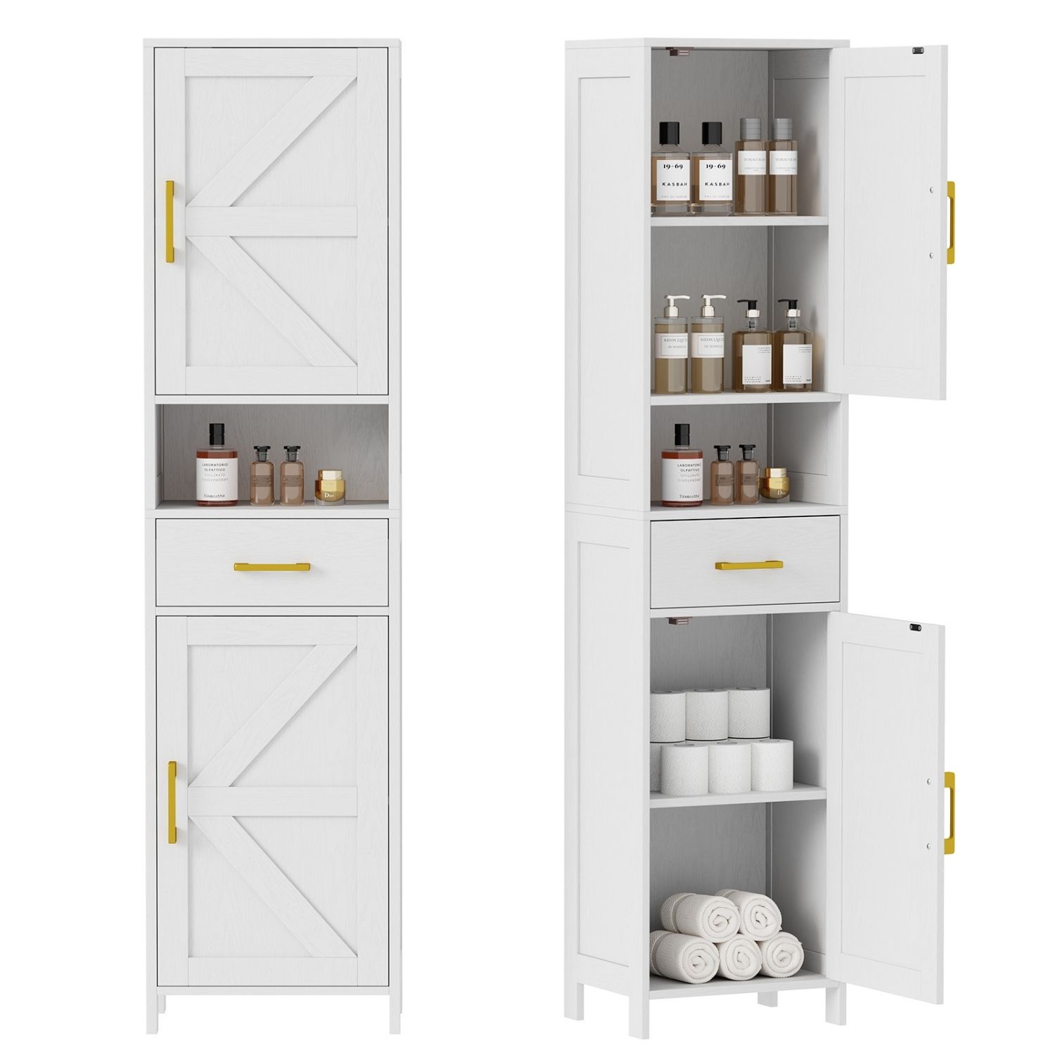 Tall Narrow Storage Cabinet, 2 Barn Doors With Drawer, Adjustable Shelves, Floor Cabinet For Bathroom, Living Room, Entryway, Kitchen