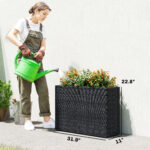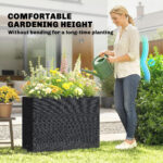 Tall Rectangular Planter with Removable Liner, Holes, PE Wicker Large Planter Box for Indoor Outdoor Plants, Black