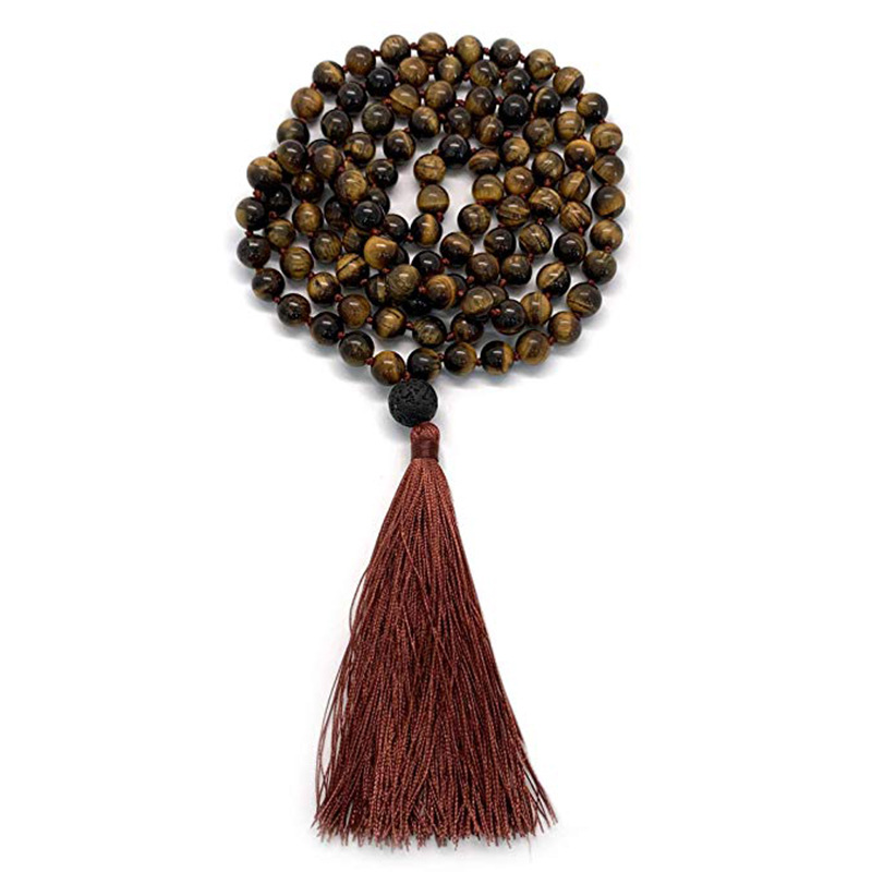 Tassel Long Necklace 108 Beads Handmade Natural Stone Layered Style