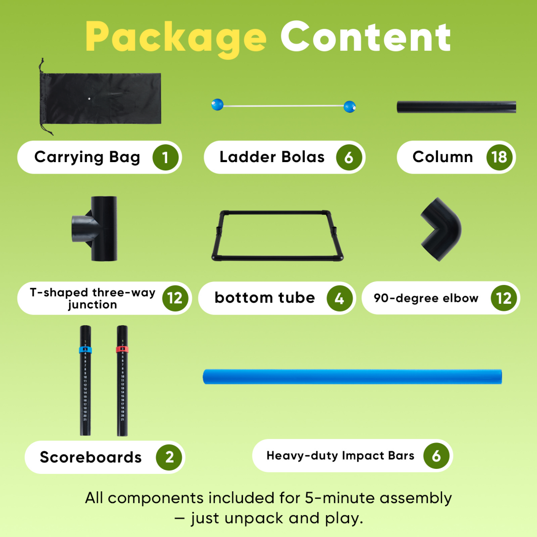 The Ladder Ball And Golf Throwing Ball Set Is Used For The Ladder Throwing Game And Includes 6 Balls, A Scoring Board And A Portable Bag.