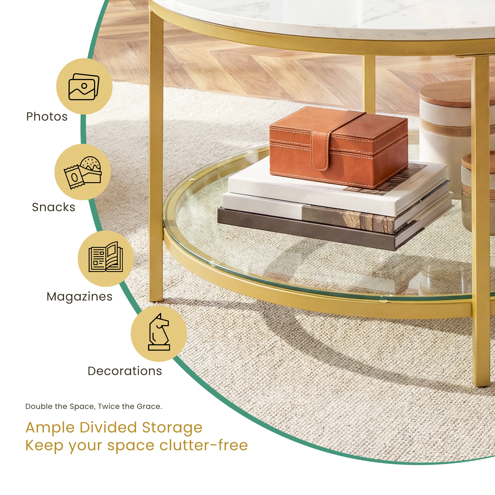 The Living Room Features A Marble Circular Glass Coffee Table, And A Double-layer Circular Transparent Coffee Table With Storage Function. is designed for style, comfort, and everyday use.