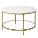 Be the first to review “The Living Room Features A Marble Circular Glass Coffee Table, And A Double-layer Circular Transparent Coffee Table With Storage Function.”