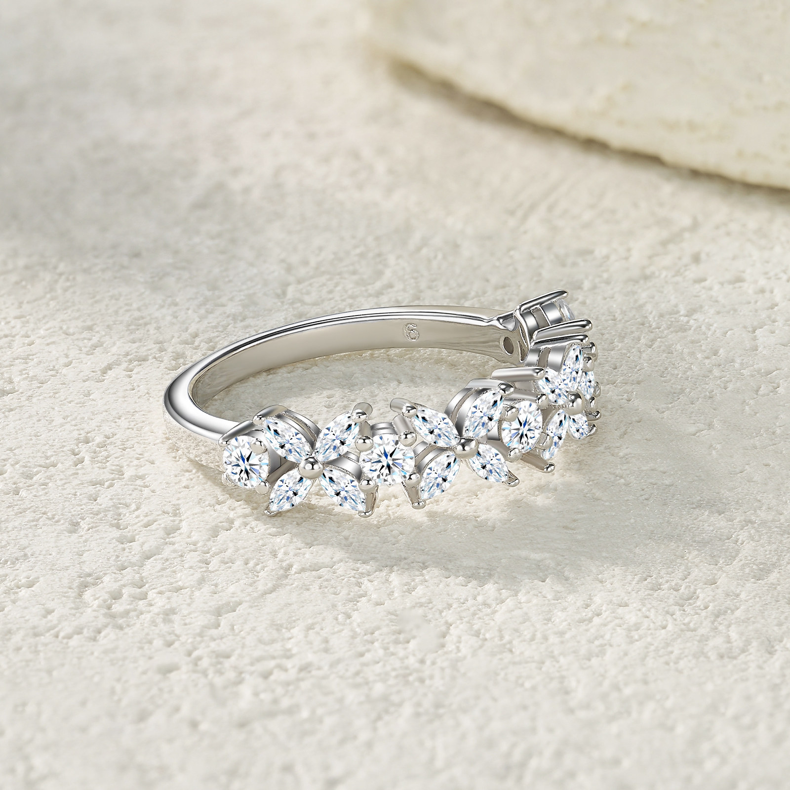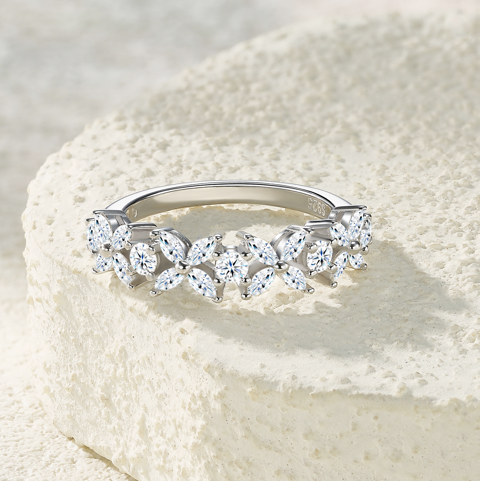 The Lucky Leaf – A Luxurious And Fashionable Minimalist Jewelry Ring Set With Top-quality Moissanite, Made Of S925 Silver Electroplated With Platinum.
