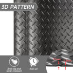 • Basic informationProduct Type:Single Box ProductProduct Name:Thickened Diamond 4 ft. x 10 ft. Black PVC Garage Flooring Rolls(40 sq. ft.)Color:BlackMaterial:PVCProduct sizeAssembly Length (inches):120.00Assembly Width (inches):48.00Assembly Height (inches):0.08Product Weight (lbs):30.00Package sizeLength (inches):50.00Width (inches):4.00Height (inches):4.00Weight (lbs):33.00Product features:Heavy-Duty Thickened PVC: Built to endure extreme weight (trailers, trucks) without warping, offering unmatched wear resistance and long-term durability for demanding environments.Anti-Slip Diamond Texture: Maximizes grip with a textured surface while repelling mud, oil, and chemicals; stain-resistant and waterproof for quick dry-mop or hose cleaning.Instant Customization & Setup: Roll out smoothly and trim to fit any space effortlessly with scissors or a utility knife-no tools required for quick installation.Large-Scale Vehicle Protection: Designed for SUVs, RVs, and sports cars, providing ample coverage to safeguard floors under oversized vehicles and cargo.Versatile Commercial/Home Use: Perfect for garages, parking lots, hospitals, and food factories-low-maintenance, economical floor defense for high-traffic areas.Weather/UV-Resistant: Withstands harsh conditions, including UV exposure and temperature swings, ensuring fade-free performance year-round.