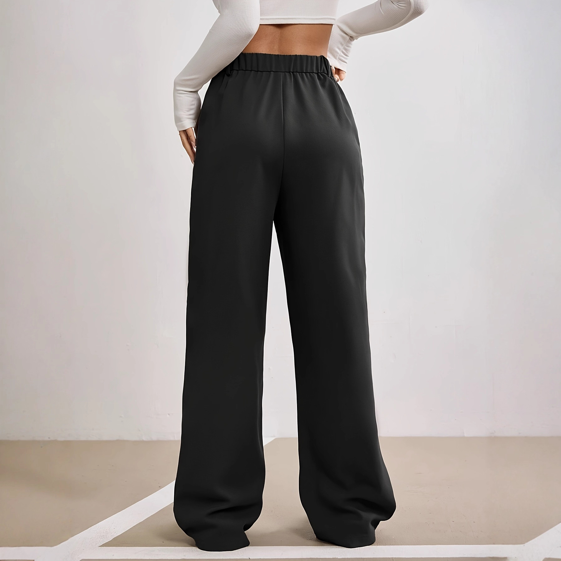 Thin Draping High-end Feel Loose-fitting Figure-flattering Black Straight-leg Wide-leg Pants