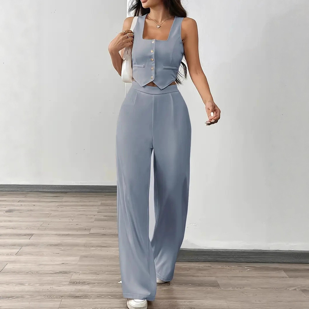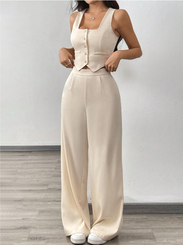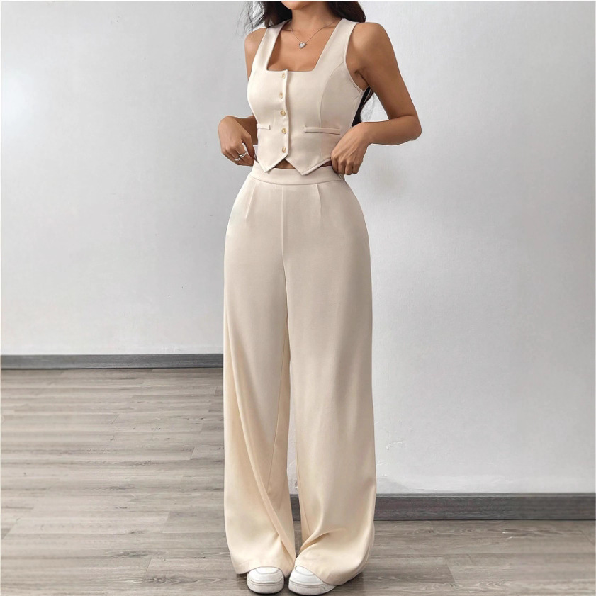 Tight-fitting Tank Top Set With High-waisted Wide-leg Womens Casual Trousers is designed for style, comfort, and everyday use.