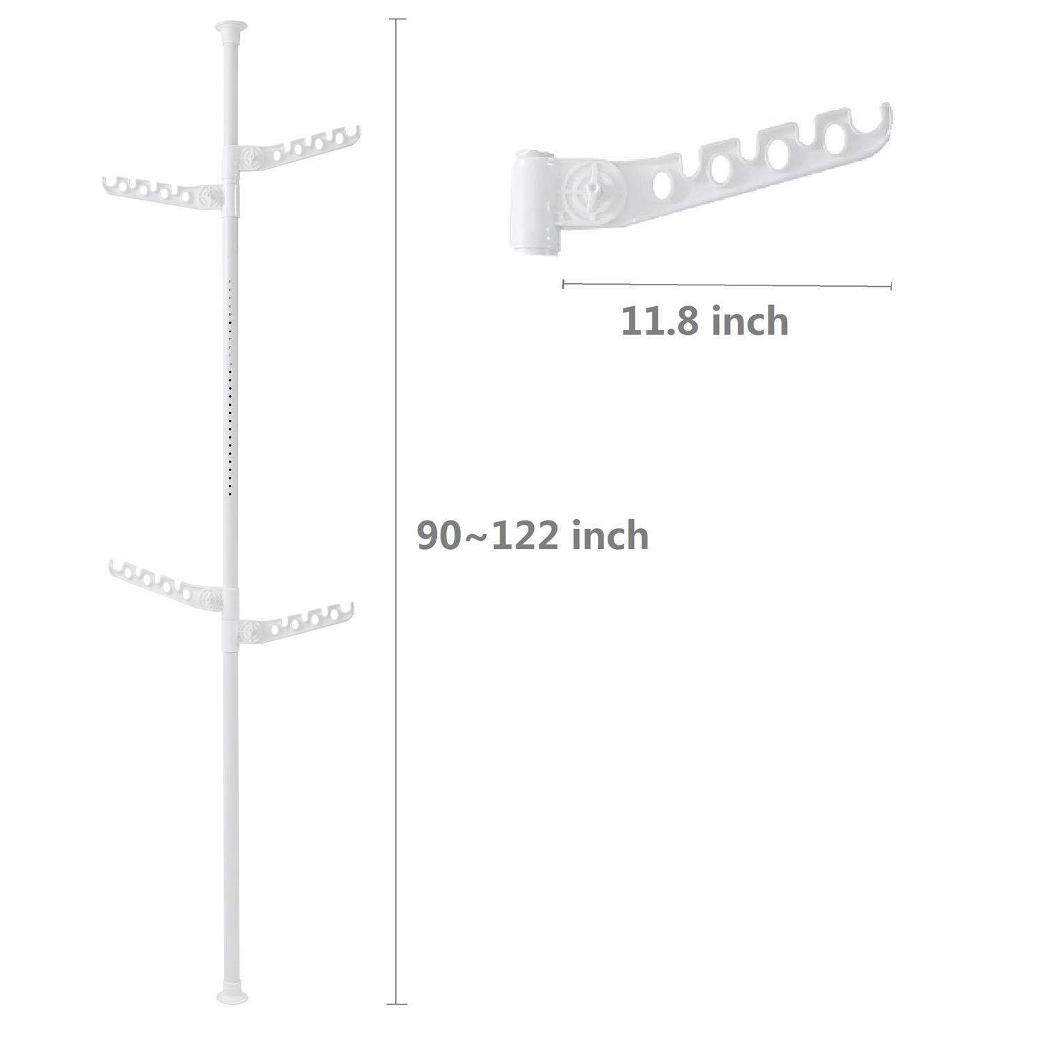 - Our versatile coat hanger stand offers customizable height options, ranging from 65 inches to 124 inches vertically. Additionally, the inclusion of 6 adjustable hooks on the side ensures effortless accommodation of garments of varying lengths. Whether it’s a bulky winter coat or a delicate dress, our coat rack stand provides ample space without touching the floor. The vertical rods are thoughtfully designed with springs, allowing for easy extension or contraction based on your needs. With these features, our coat rack, alongside the hat stand, guarantees a tailored storage solution for your wardrobe essentials.