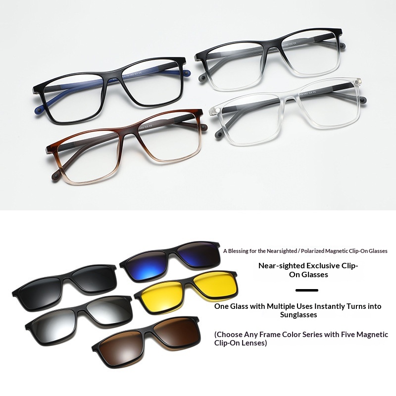 TR Magnetic Glasses For Men And Women Myopia Frame With 5-in-1 Polarized Lenses