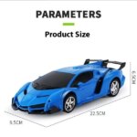 • 9.45 in. * 4.34 in. * 3.15 in.Package Weight:0.89 lbsDetailsEnhanced 2.4GHz Remote Control: This transforming RC car toys for ages 5-7 boasts a 2.4GHz remote controller, delivering lightning-fast response times and a robust control range of up to 50 meters