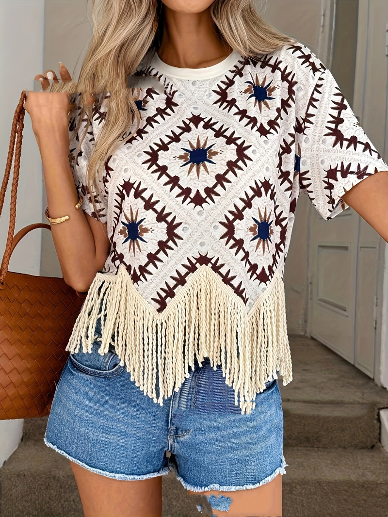 Travel Outfit Ethnic-style Tassel Outerwear For Travel Photos Bohemian Sanya Womens Short-sleeve T-shirt