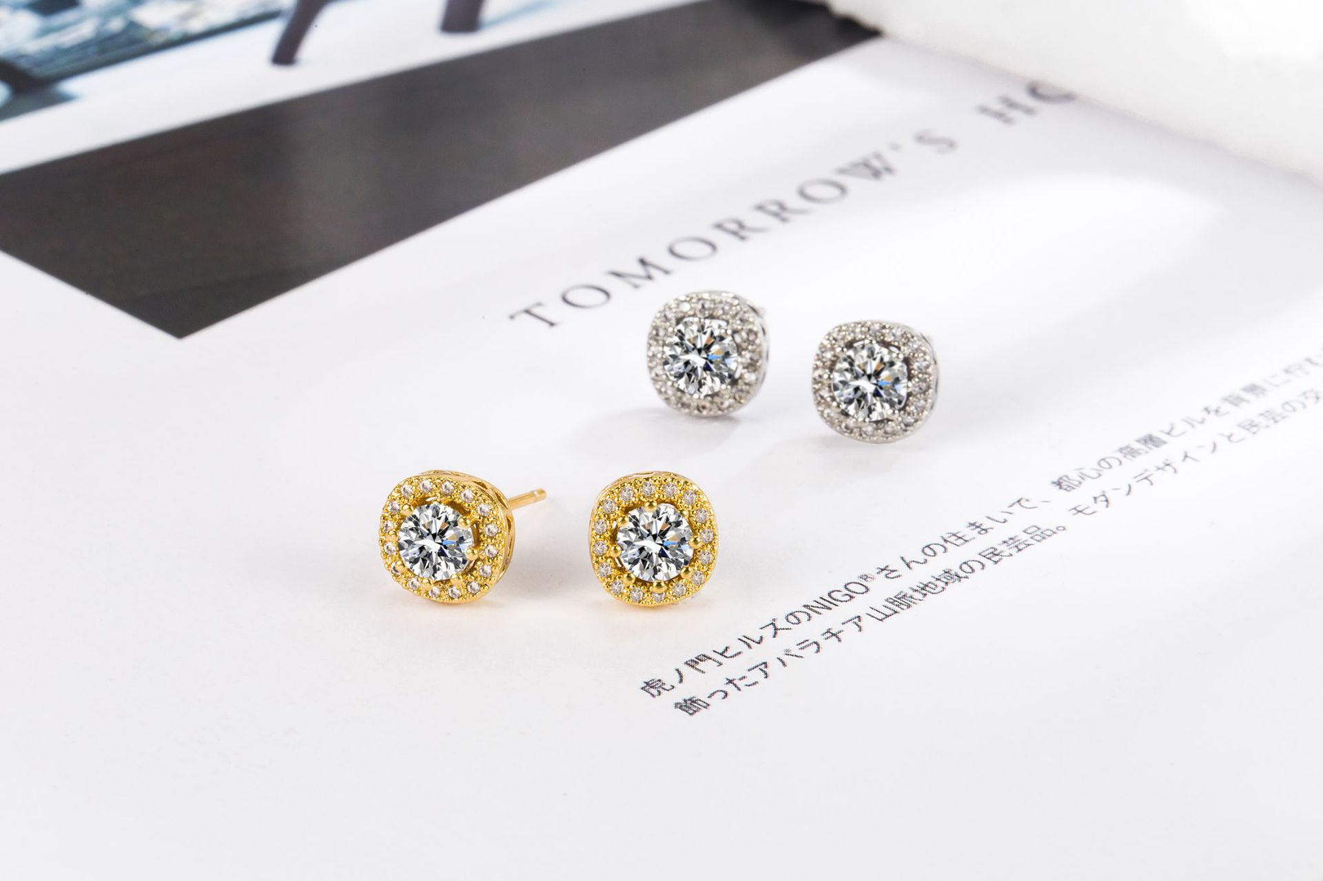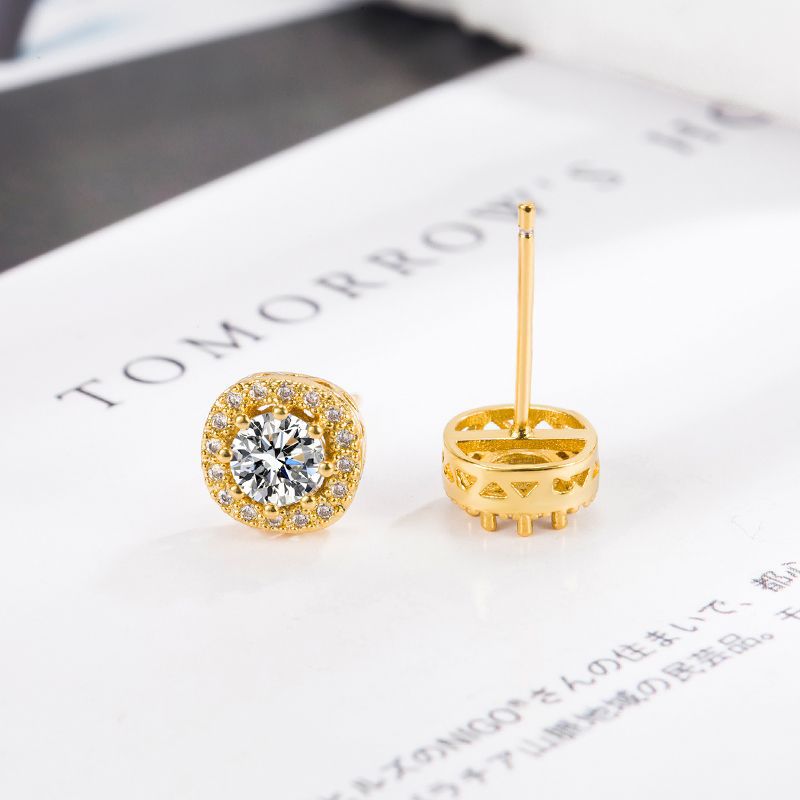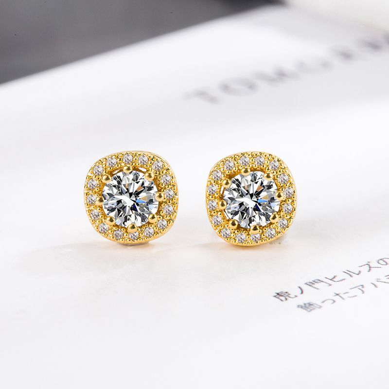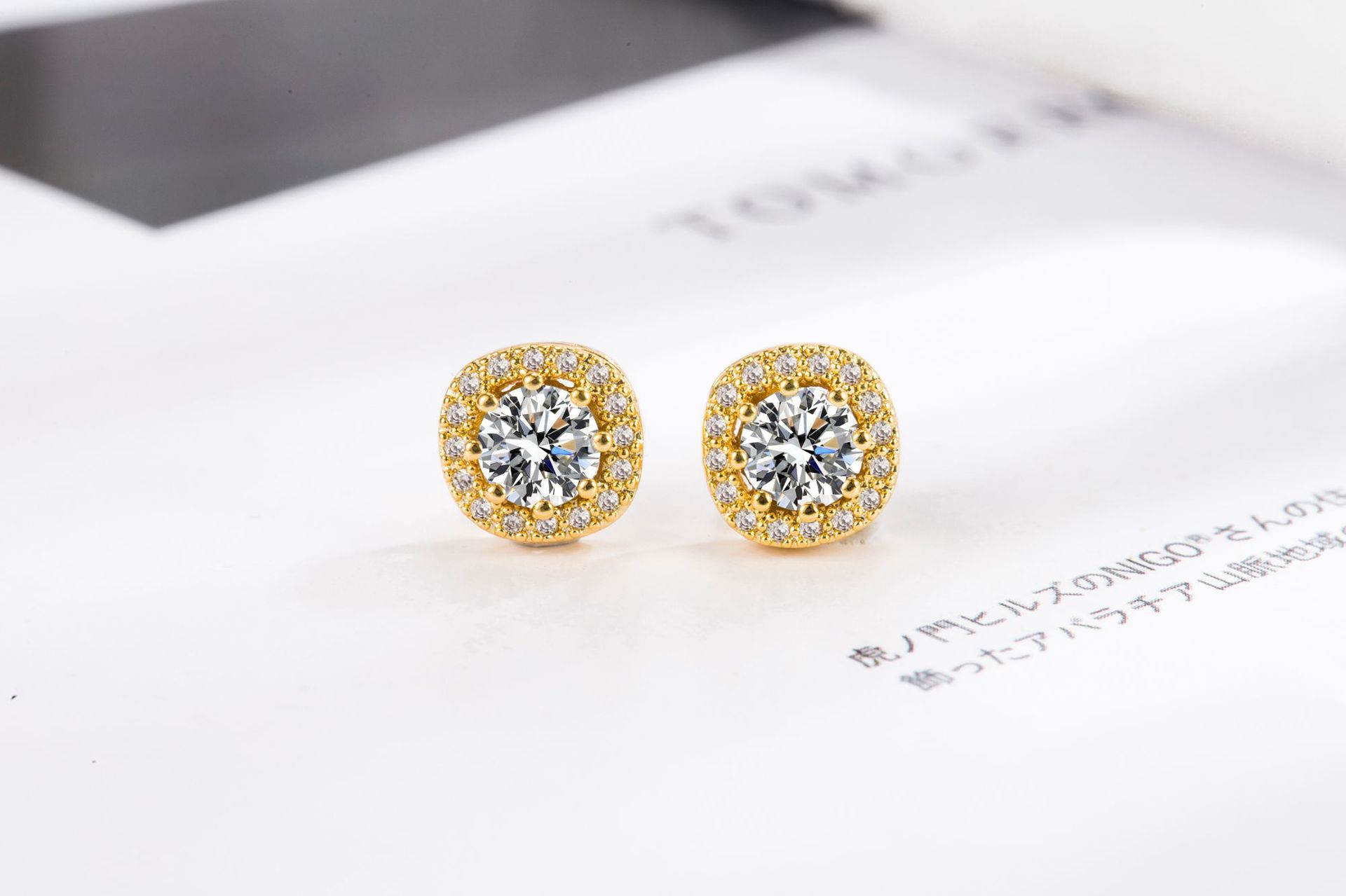 • Square Round-Stone Earrings (Platinum), Square Round-Stone Earrings (Gold)