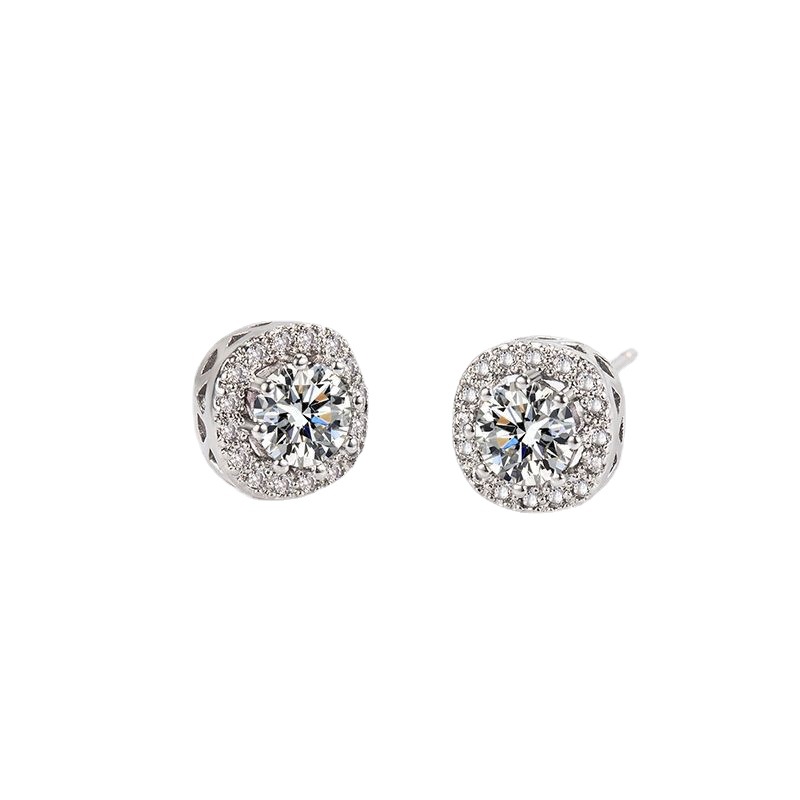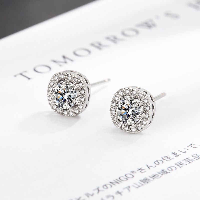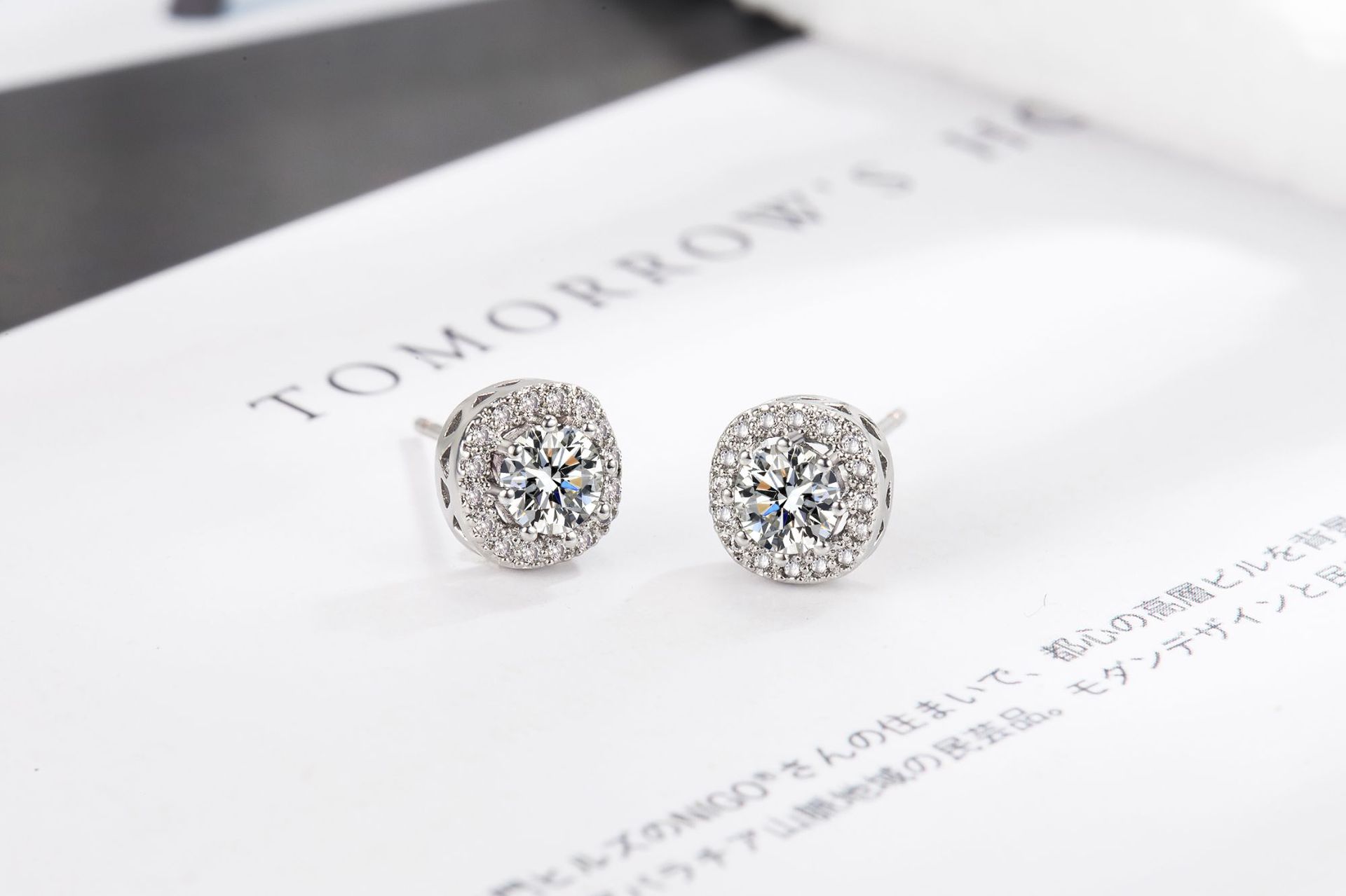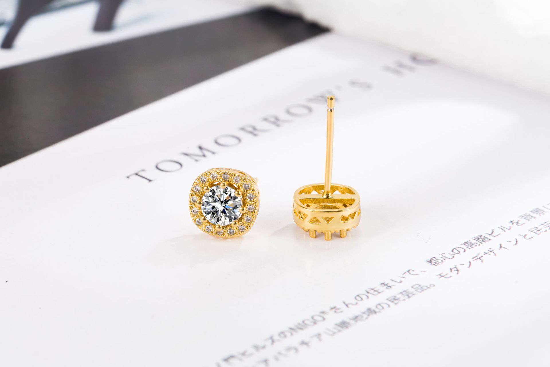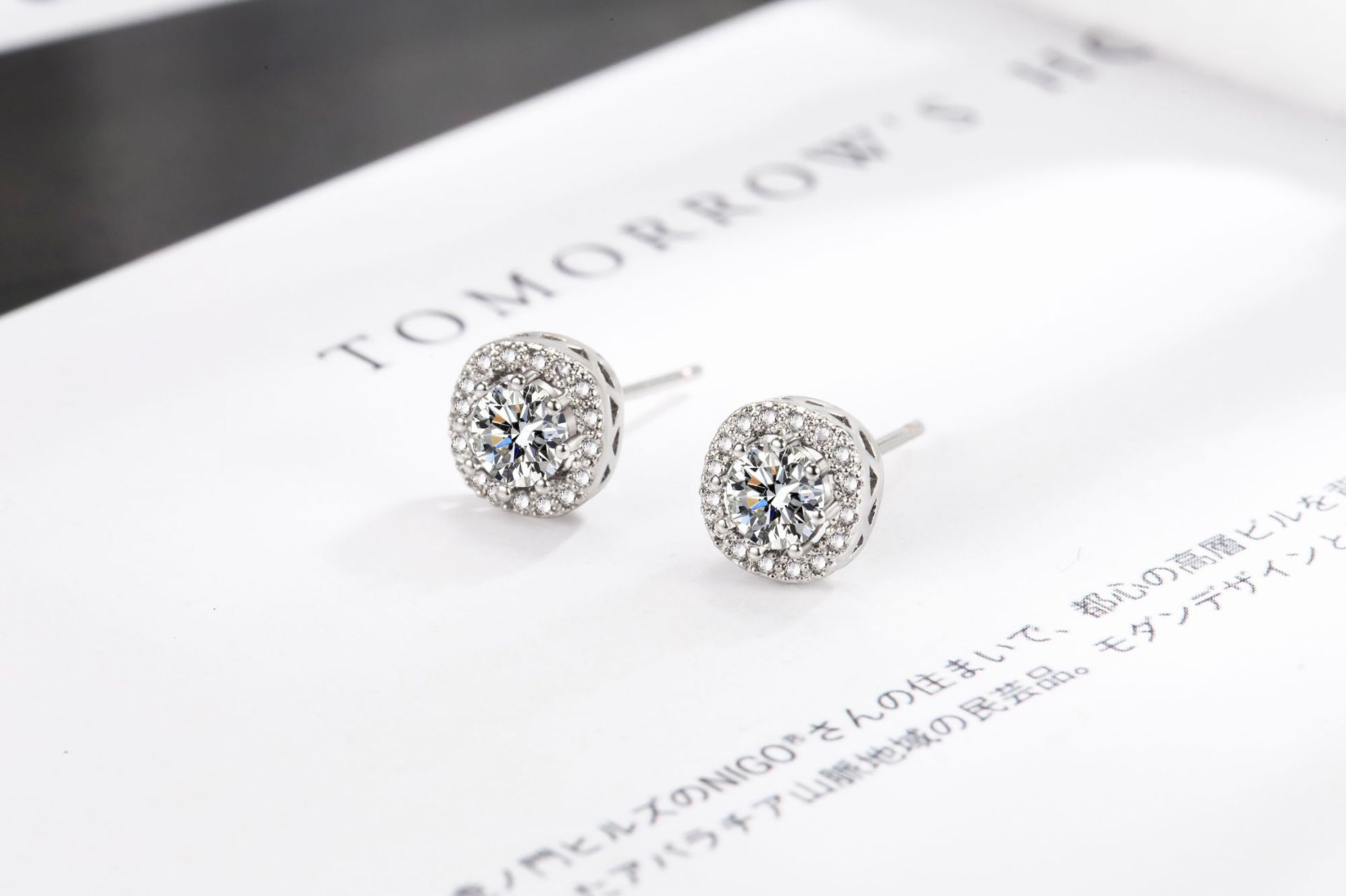 • Square Round-Stone Earrings (Platinum), Square Round-Stone Earrings (Gold)