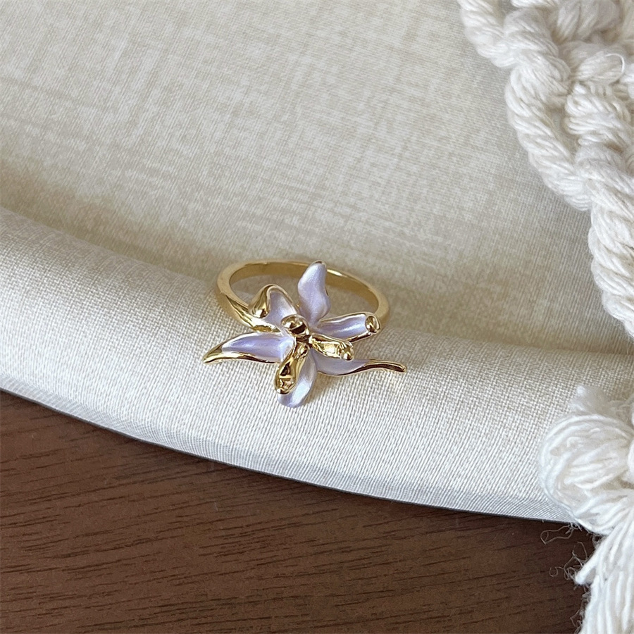 Trendy Ins Purple Enamel Butterfly Ring, Delicate Light Luxury Look, Universal Non-tarnish Jewellery
