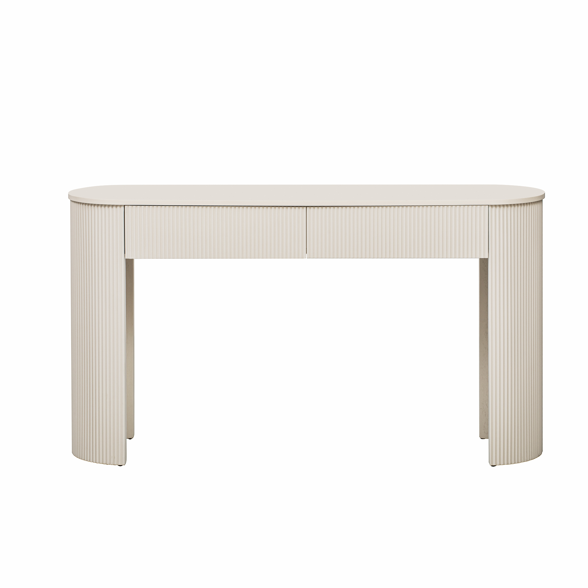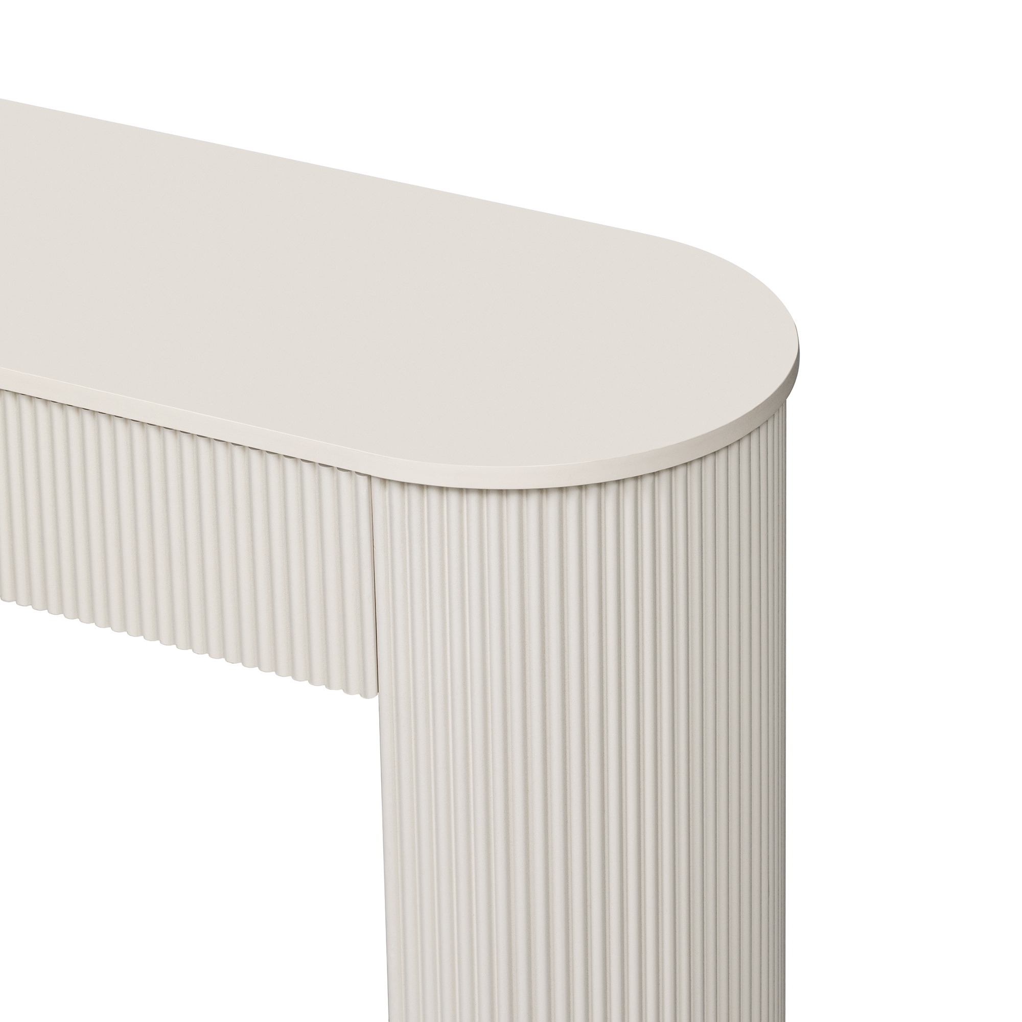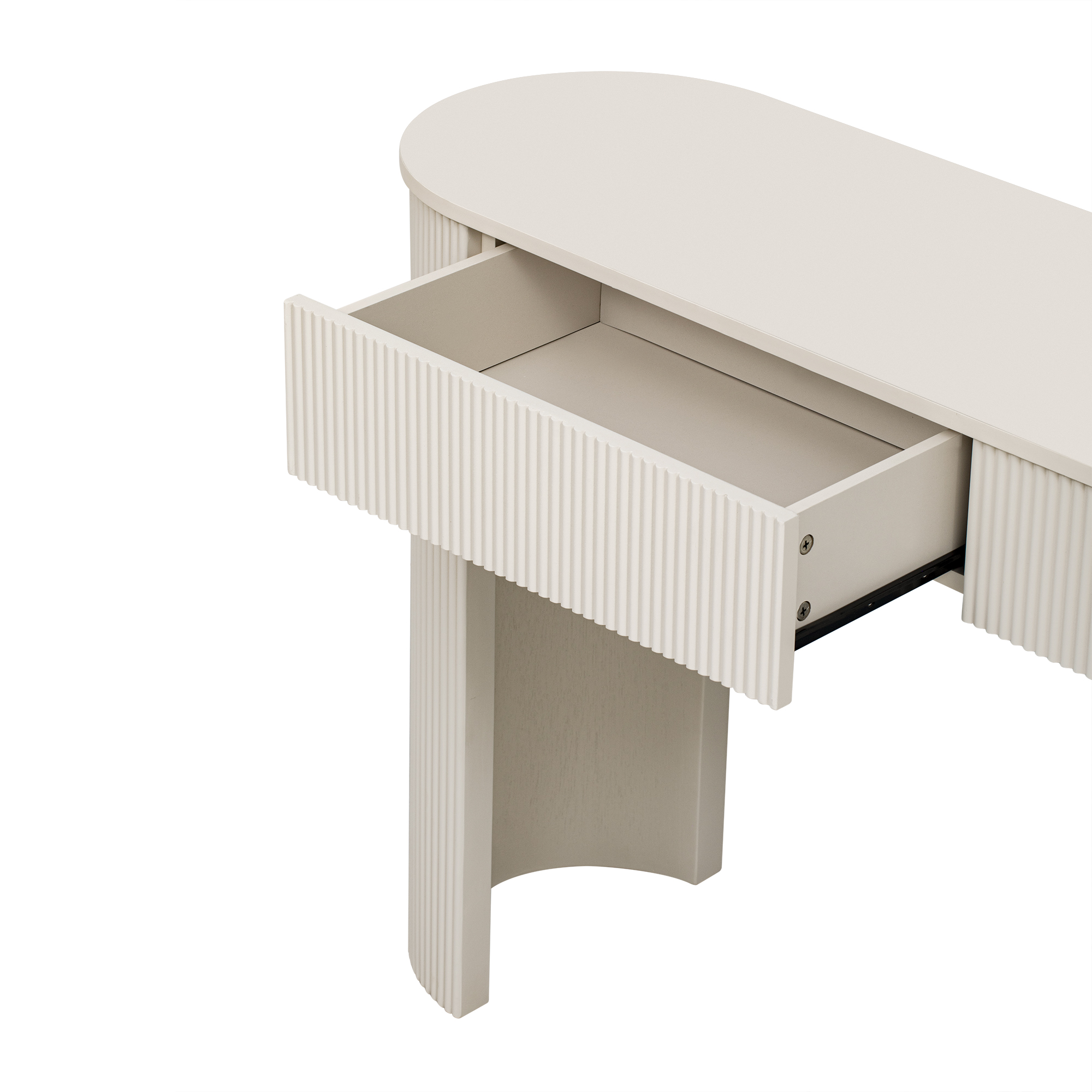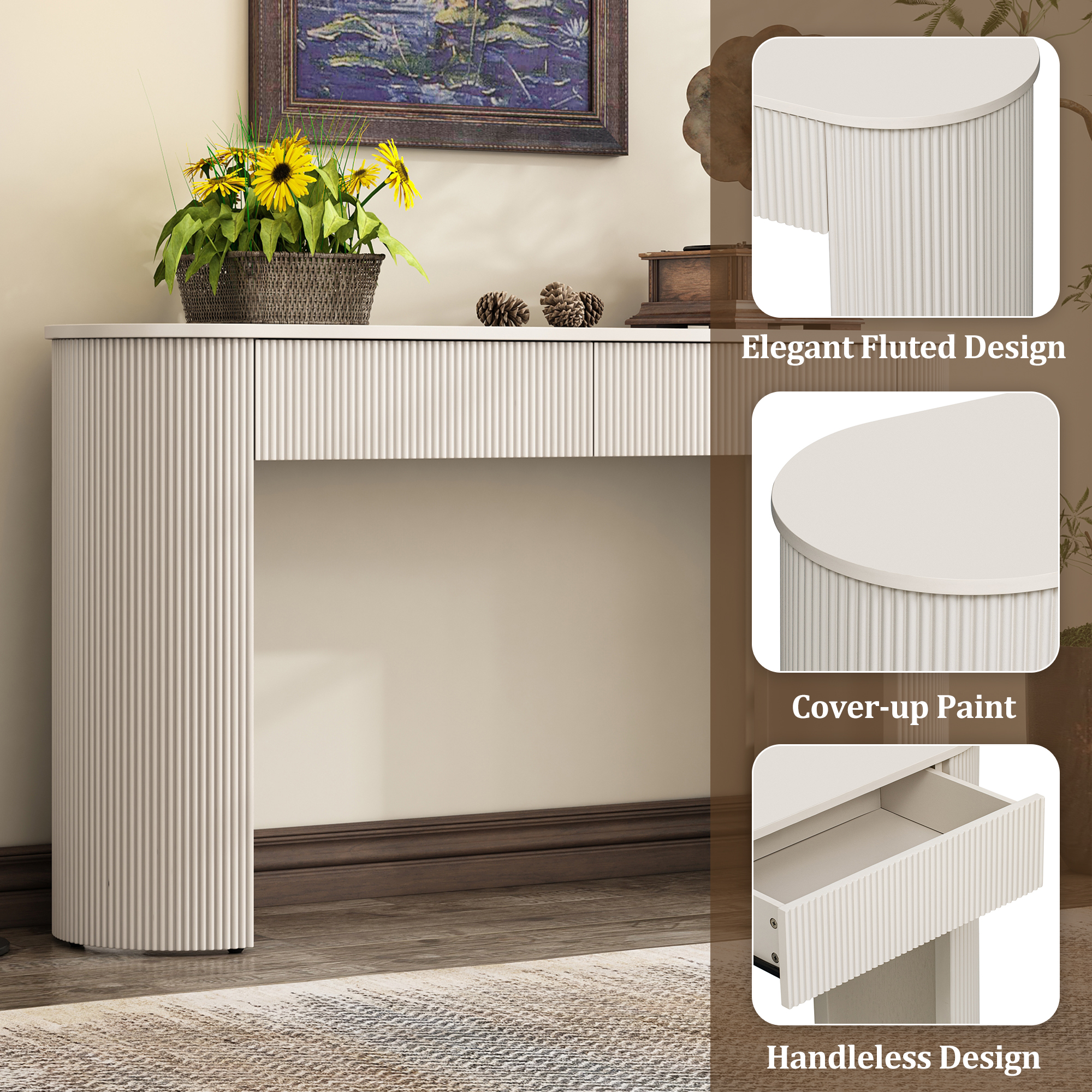 TREXM Entryway Table With Fluted Design Modern Console Table With Storage Oval Top And 2 Drawers For Entryway And Living Room Champagne White