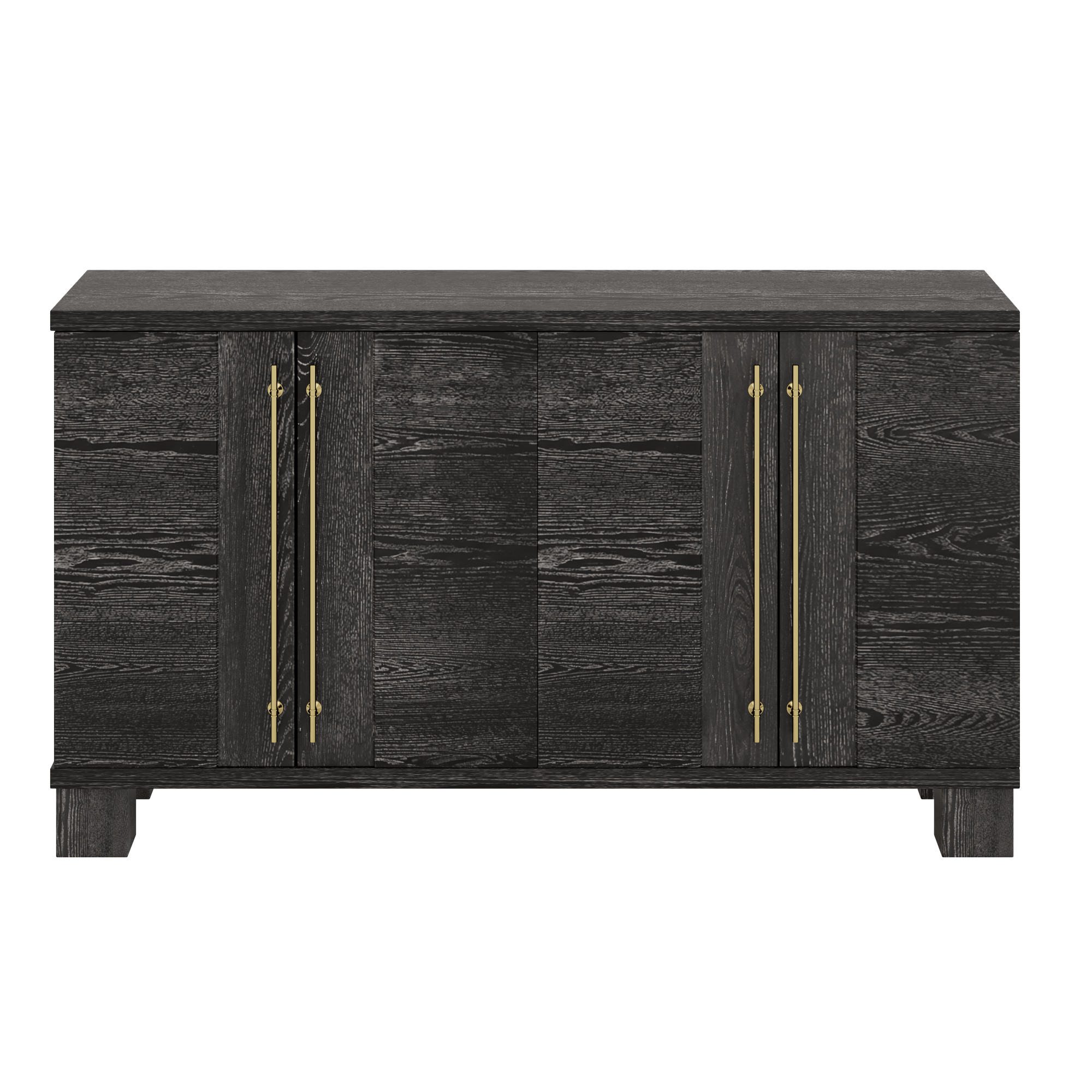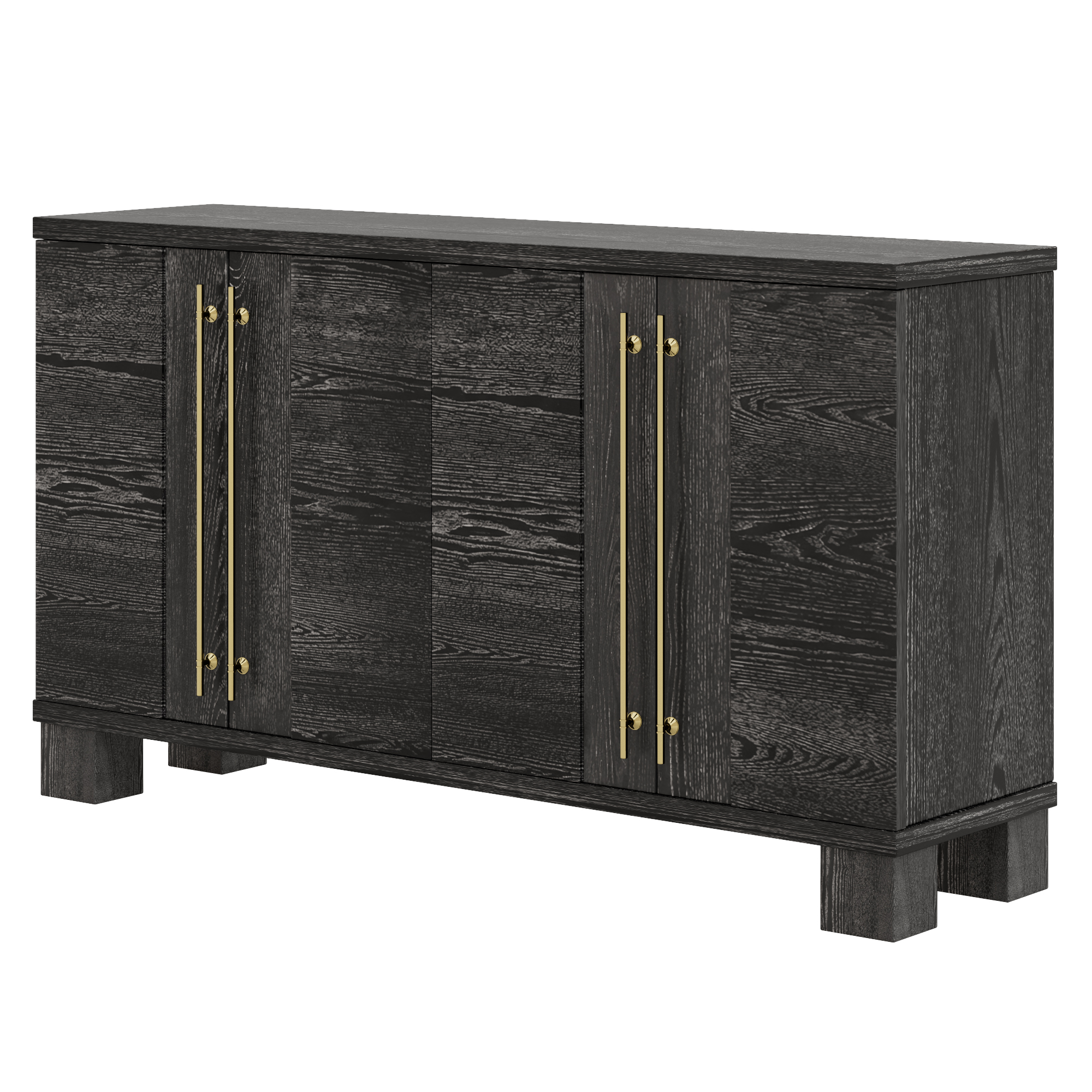 TREXM Sideboard Buffet Cabinet With Storage Wood Sideboard With Adjustable Shelves And Gold Handles For Kitchen Dining Room And Living Room Black
