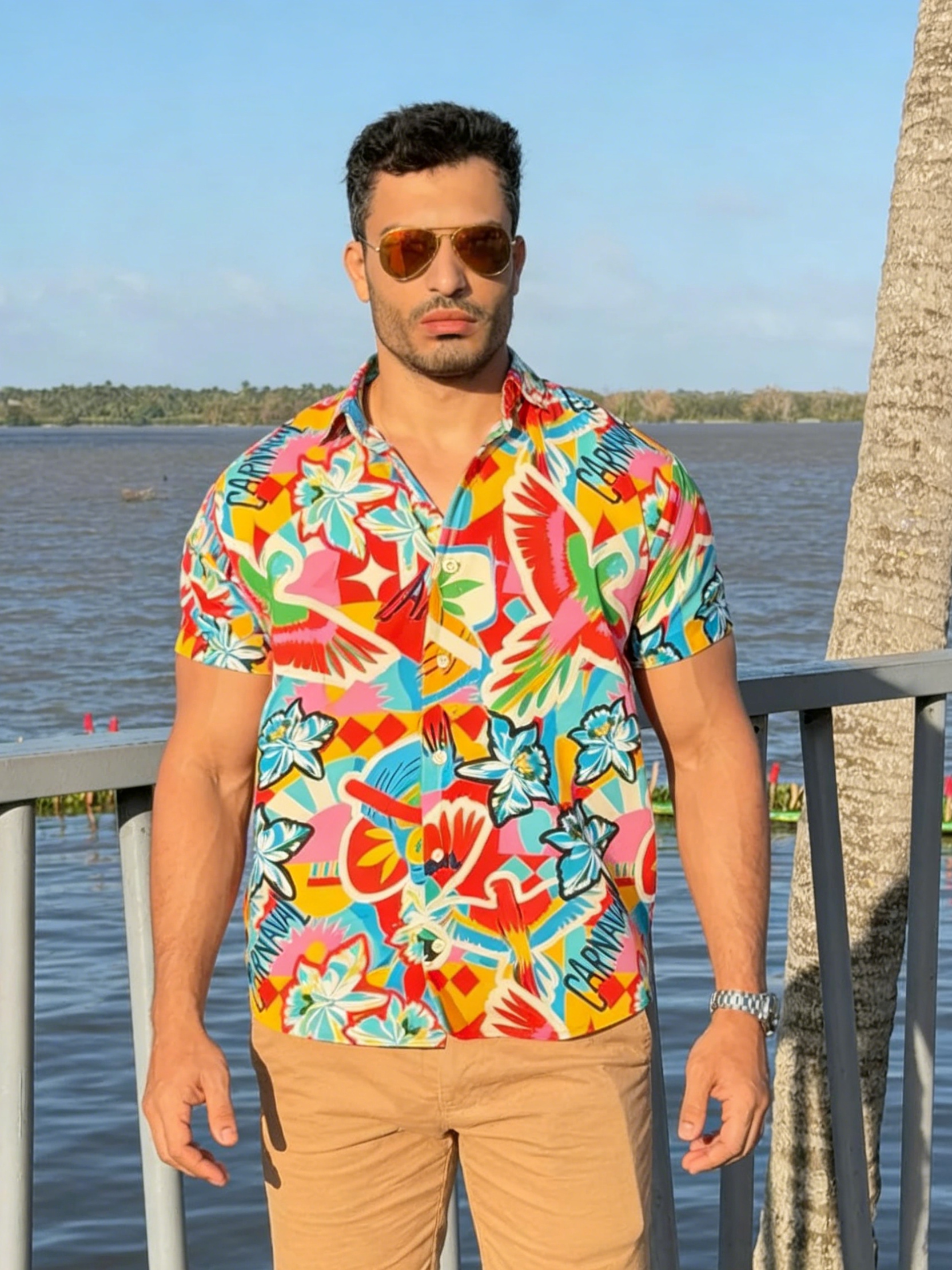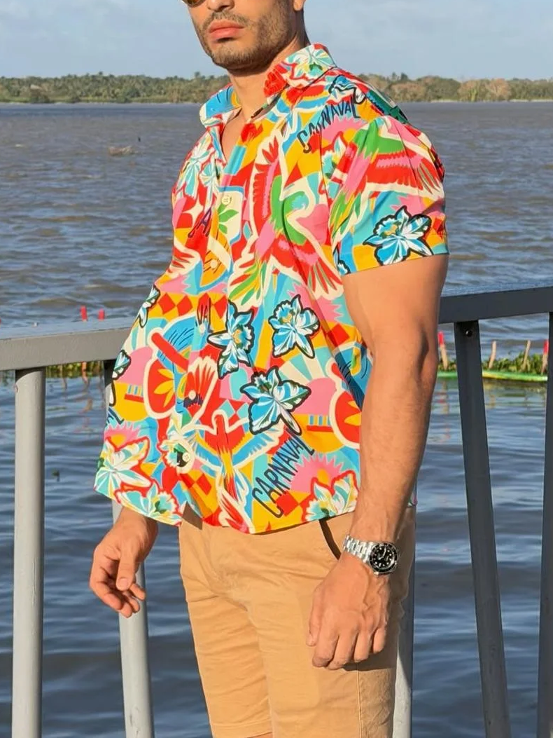 Be the first to review “Tropical Floral Print Short Sleeve Button Down Shirt”