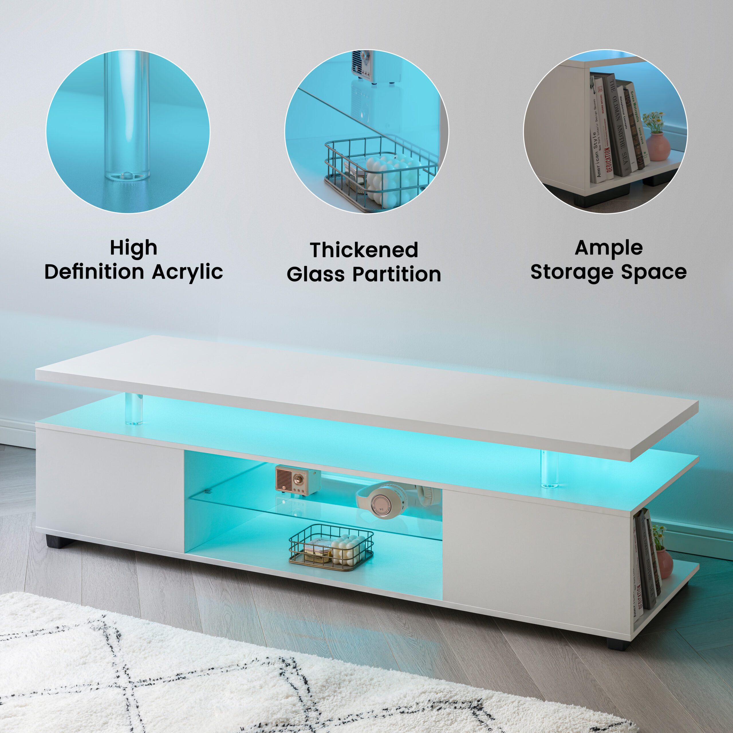 TV Stand For 70 Inch TV LED Gaming Entertainment Center Media Storage Console Table With Large Side Cabinet For Living Room White