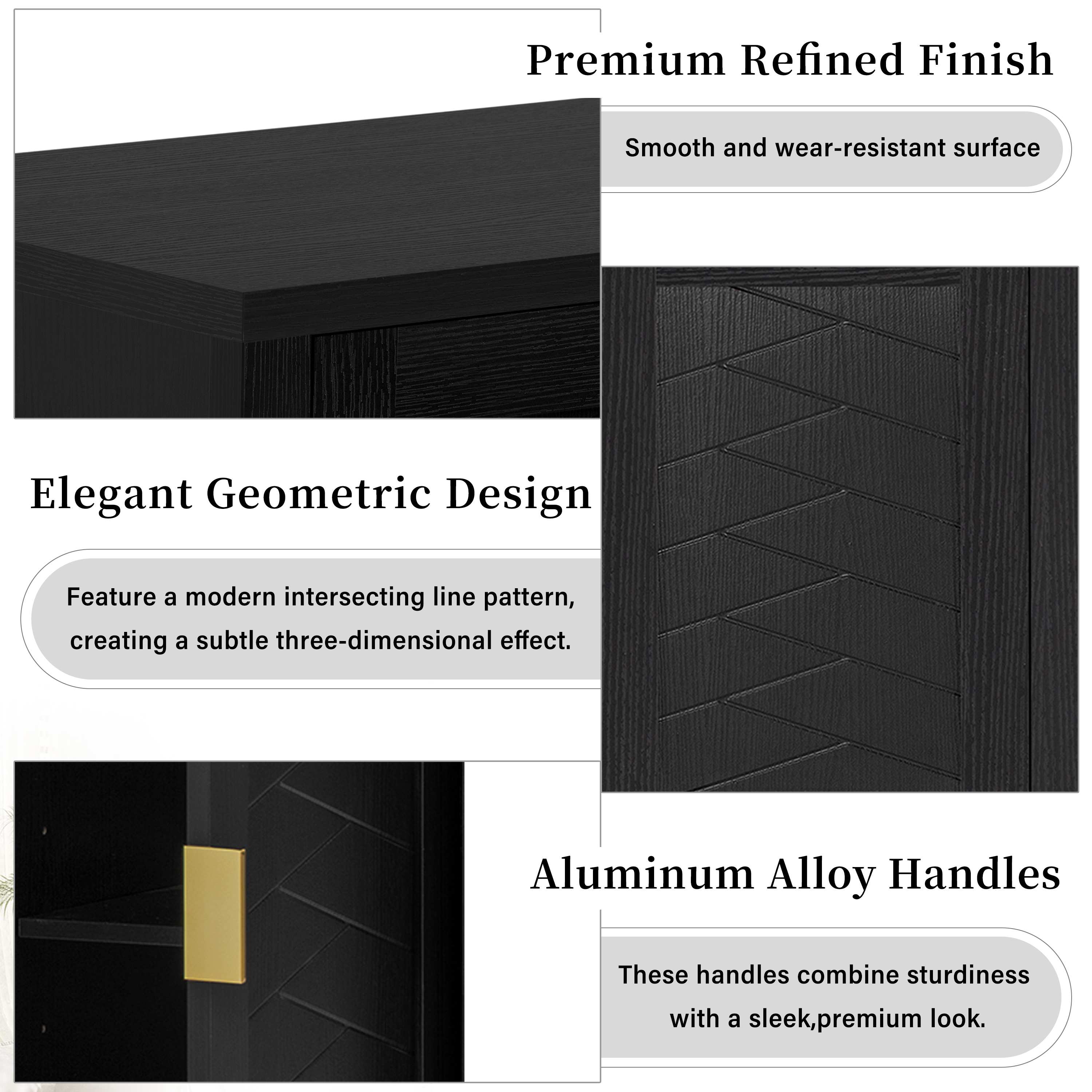 • N711P345165BProduct Type :Single Box ProductProduct Name:U_STYLE 55.1”Storage Sideboard with 4-Doors,Multi Functional Buffet with Open Shelf and 2-Tiers Adjustable Shelves,Modern Cabinet with Double Hooks,Suitable for Living Room, Hallway, Dining,Office.Main Color:BlackMain Material:MDFProduct Style:American Design,American TraditionalUse Case:Primary Living SpaceProduct DimensionsAssembled Length (in.):55.10Assembled Width (in.):15.70Assembled Height (in.):33.50Product Weight (lbs.):79.37Package SizeLength (in.):60.44Width (in.):18.70Height (in.):7.60Weight (lbs.):86.20