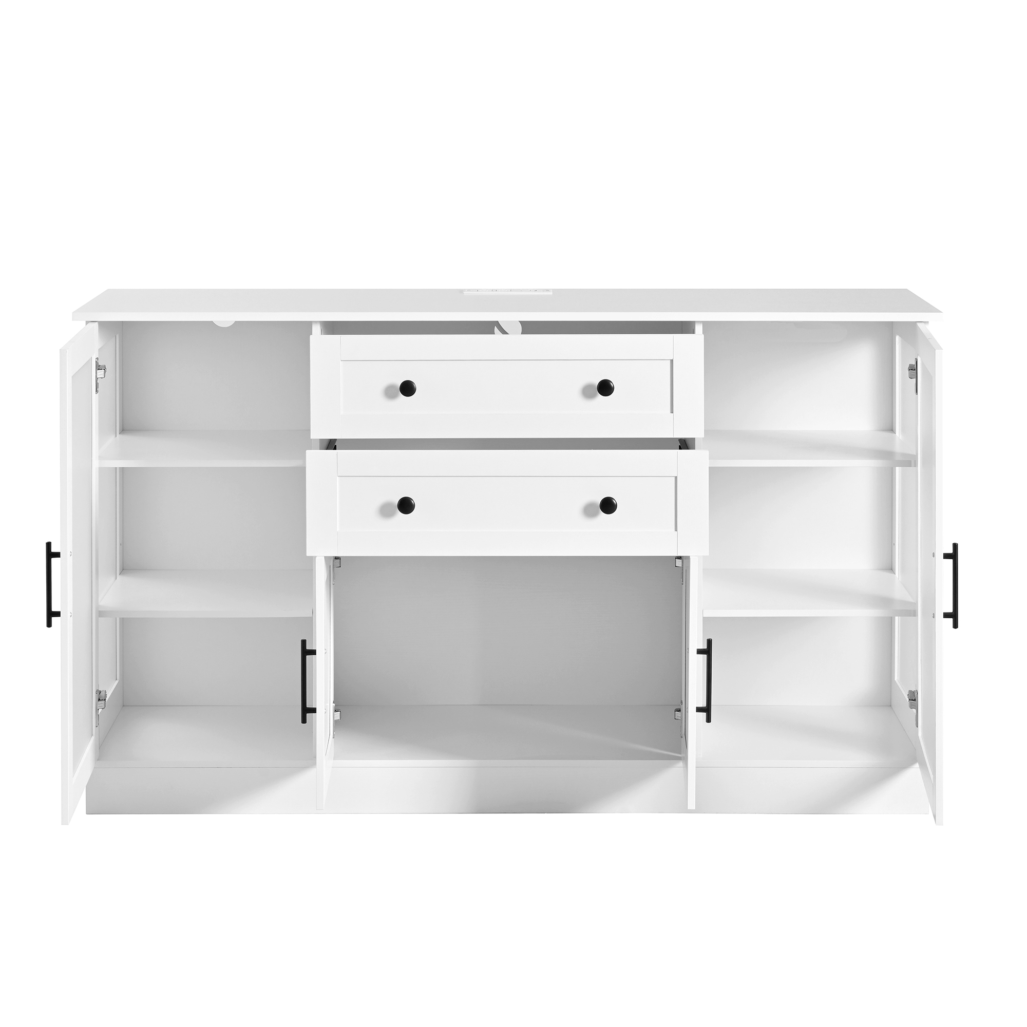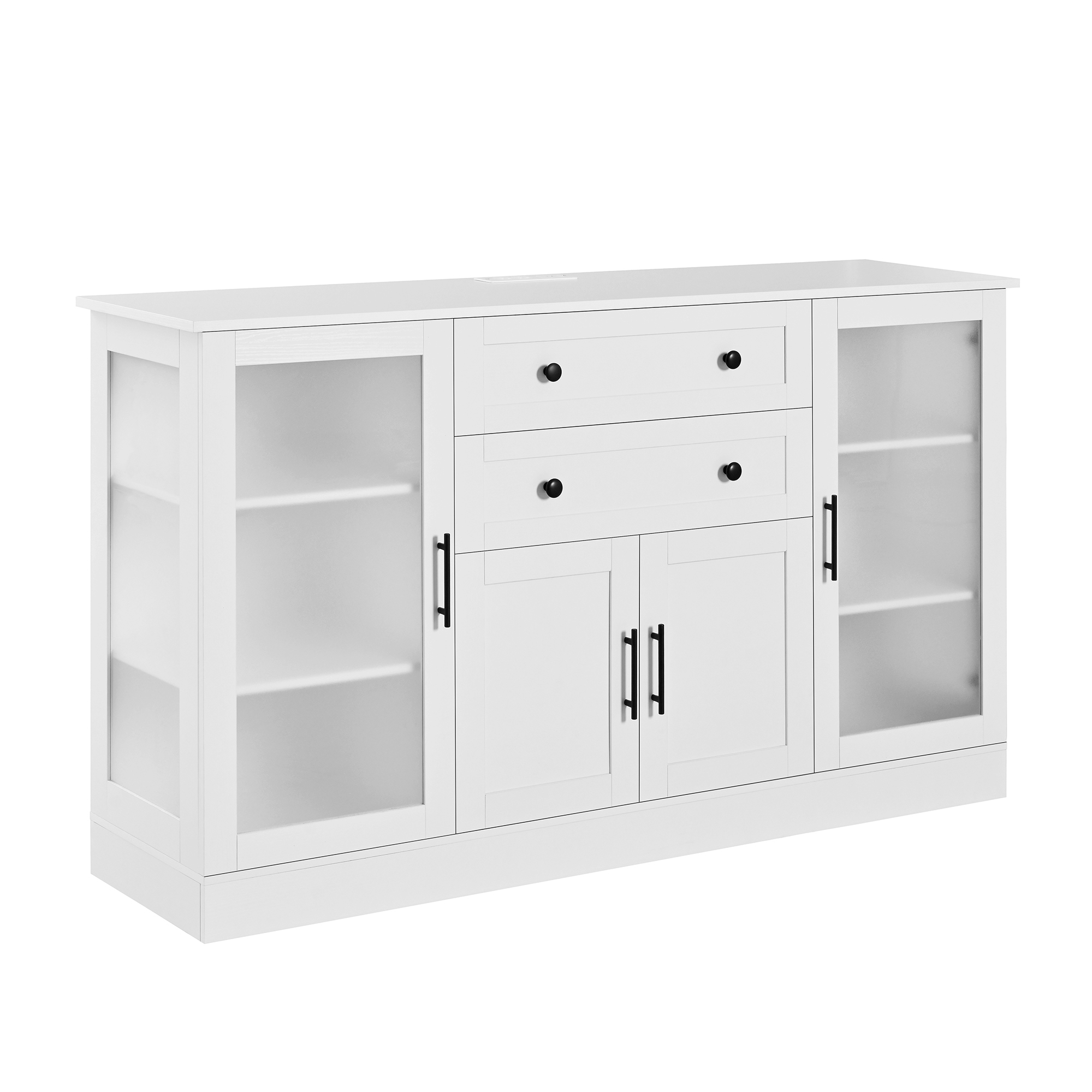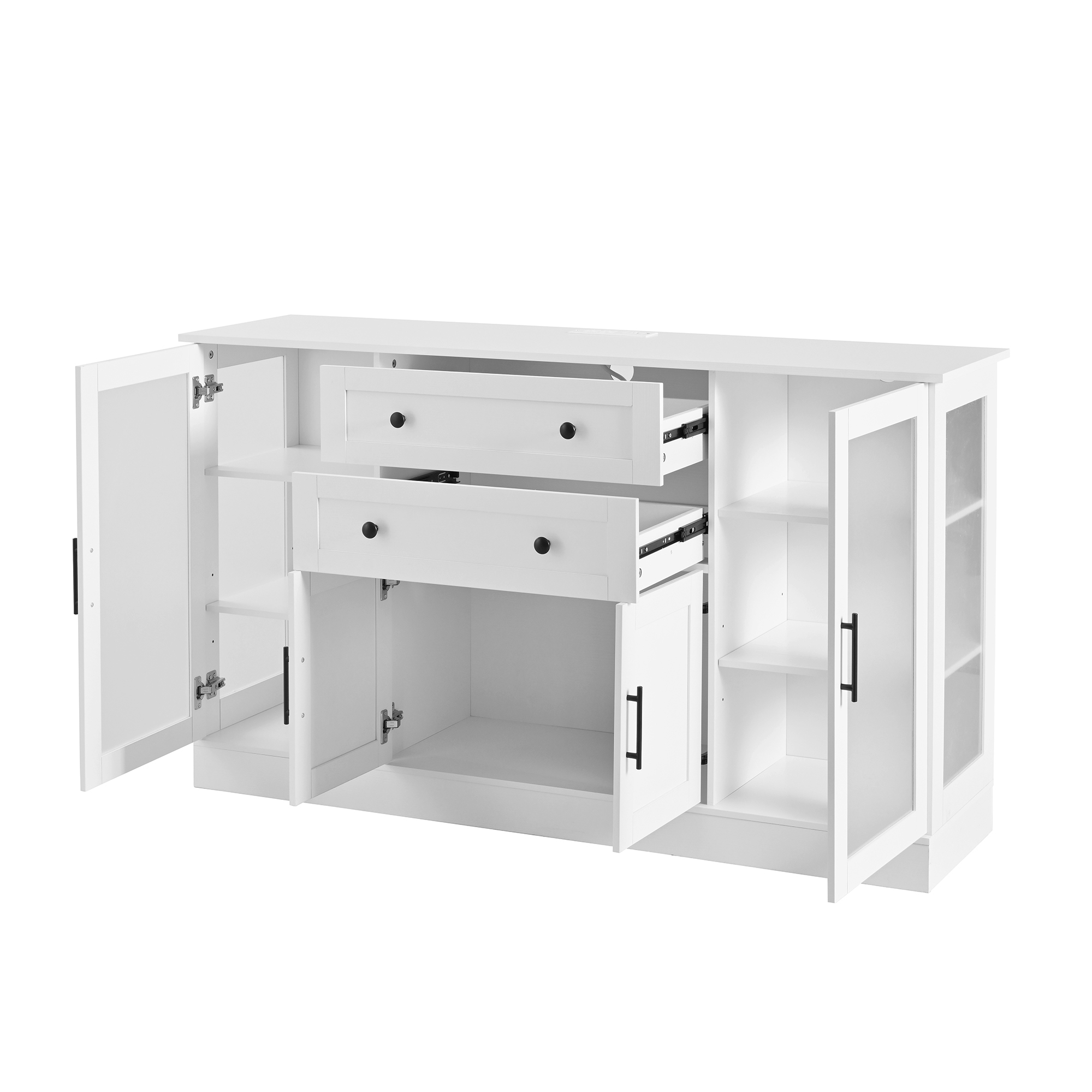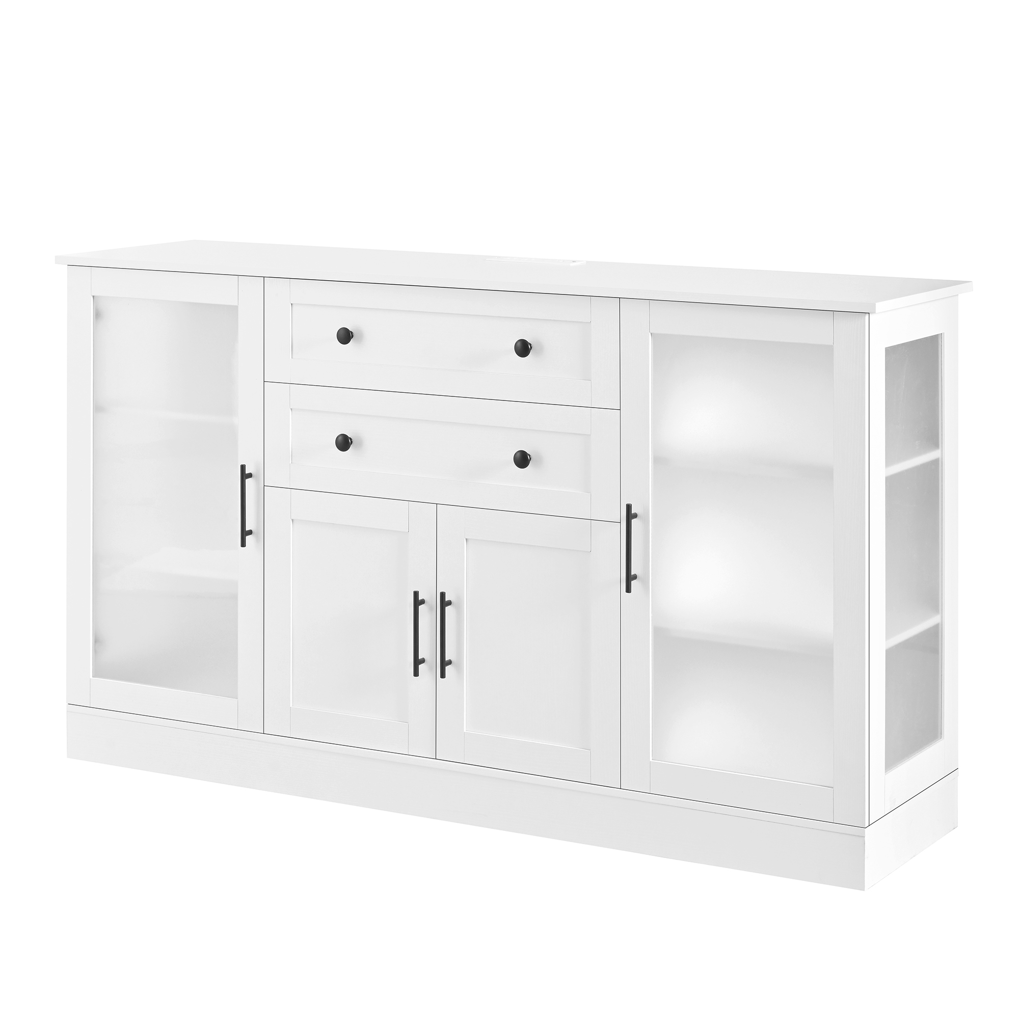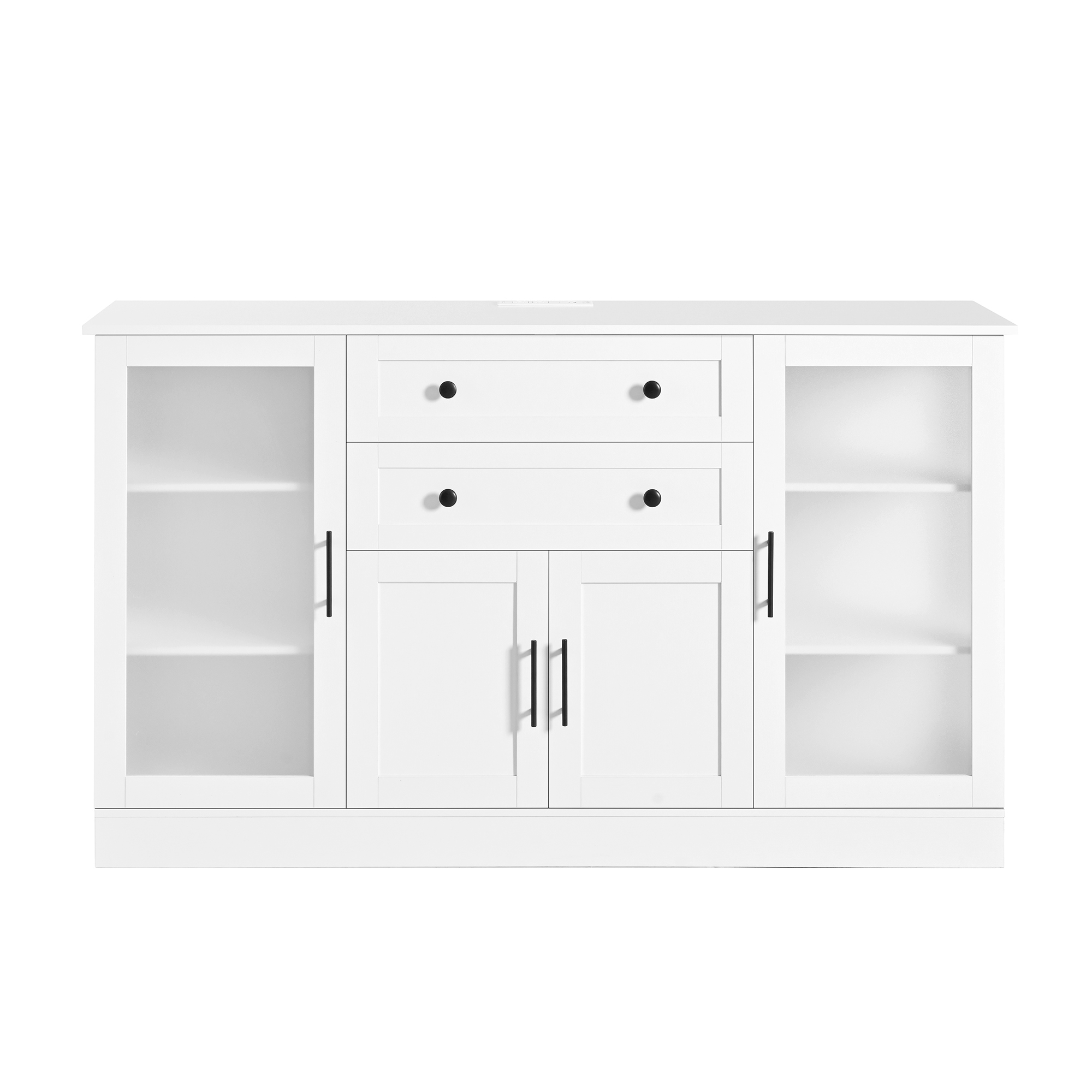 U- Style 58.3 Modern Buffet Sideboard With 4 Doors & 2 Drawers Adjustable Shelves Power Outlet Acrylic Panels Aluminum Alloy Handles Storage Cabinet For Dining Room Living Room And Kitchen