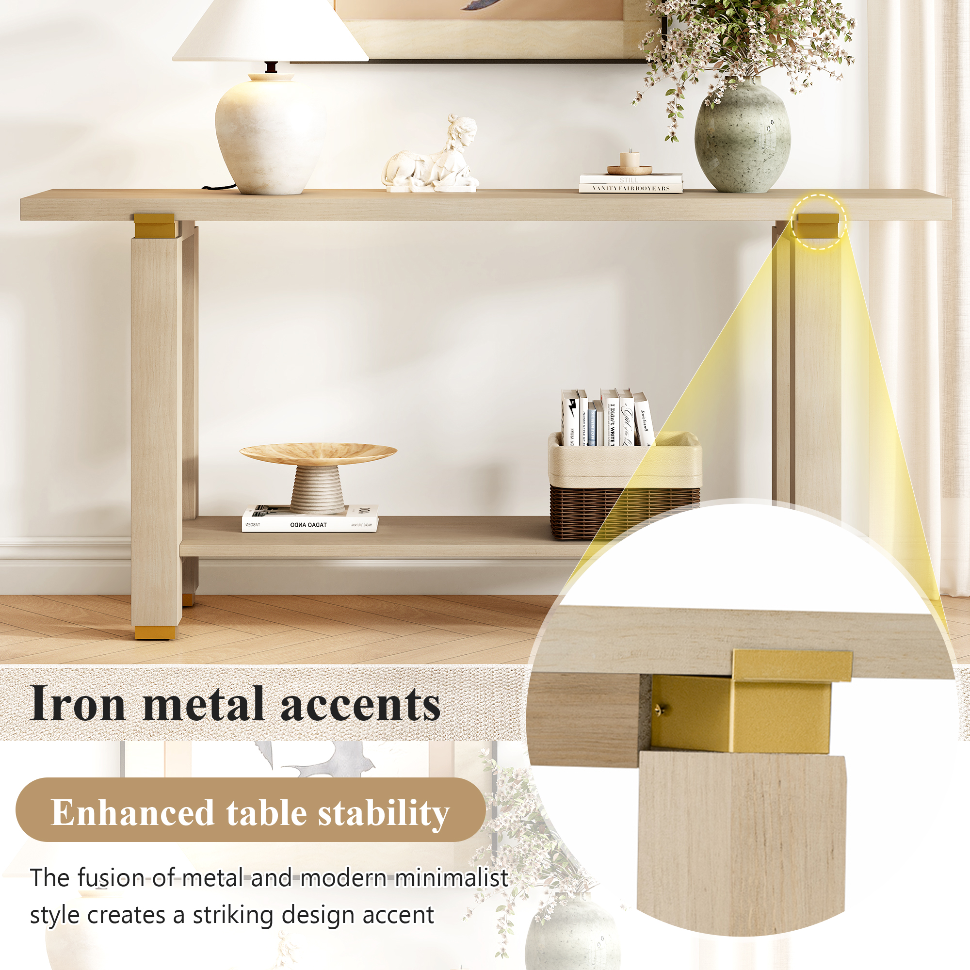 U-Style 62.9 Modern Minimalist Console Table Solid Wood Entryway Sofa Table With Metal Accents Built- In Shelf For Living Room Hallway 3 Colors Black Gray Natural