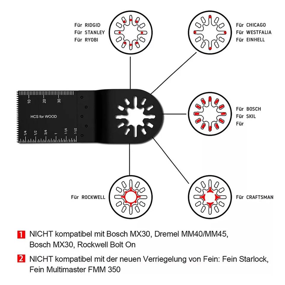 • 100pcs Multi-Function Saw Blades Oscillating Blade Bi-metal Precision Saw Tool for Dewalt Renovator Cutting Accessories Features: – Oscillating metal blade that is long-lasting and durable. – High-quality and brand-new multitool blade with the latest saw blade inner hole design (universal flower hole). Ideal for cutting carpets, leather, linoleum, cardboard, or for removing silicone, sealant, and adhesive. Also suitable for cutting wood, laminates, softer plastics, and gypsum boards. A great accessory for the construction, mining, road, and bridge building industries. – Made with a long-lasting cutting edge that resists wear and cuts quickly. The saw blade is designed for precise corner and angle cutting and can be used even for the toughest tasks. Compact, lightweight, and portable. If you have any questions, please contact us. Specifications: – Color: Black, Silver, Gold, Chestnut Brown – Type: Metal Blade – Subtype: Multi-Tool Blade – Style: Saw Blades – Material: Bimetal, high carbon steel – Feature: Top QualityPackage List: – 1 x 10mm (3/8″) high carbon steel saw blade – 1 x 10mm (3/8″) stainless steel saw blade – 1 x 20mm (3/4″) high carbon steel saw blade – 1 x 20mm (3/4″) stainless steel saw blade – 1 x 31mm (1-1/8″) stainless steel saw blade – 1 x 45mm (1-3/4″) high carbon steel saw blade – 1 x 45mm high carbon steel blade – 1 x 52mm (2″) straight stainless steel scraper – 1 x 52mm (2″) curved stainless steel scraper – 1 x 65mm (2-1/2″) hard alloy semi-circle saw blade – 1 x 65mm (2-1/2″) high carbon steel saw blade – 1 x 65mm (2-1/2″) high carbon steel grinding blade – 1 x 78x35mm (1-2/5″) stainless steel finger sanding disc – 1 x 80mm (3-1/8″) hard alloy triangular saw blade – 1 x 80mm (3-1/8″) hard alloy semi-circle – 1 x 80mm (3-1/8″) triangular stainless steel sanding disc – 1 x 88mm (3-1/2″) hard alloy semi-circle – 8 x 35mm (1-3/8″) high carbon steel saw blades – 25 x 35x50mm (1-3/4″) triangular sandpapers – 50 x 80mm (3-1/8″) triangular sandpapers