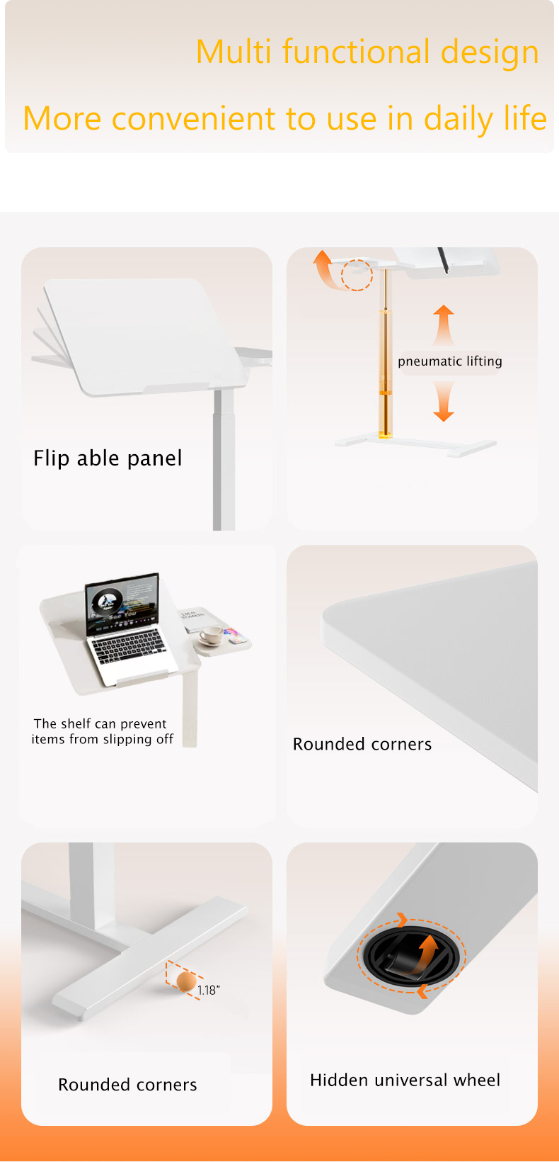 UPGRADED Overbed Bedside Desk, Mobile Rolling Laptop Stand Tilting Overbed Table With Wheels, Height Adjustable Tray Bedside Table For Laptop Bed Sofa, WHITE