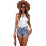 Be the first to review “V-Neck Lace-trimmed Patchwork Sleeveless Pullover T-Shirt For Women”