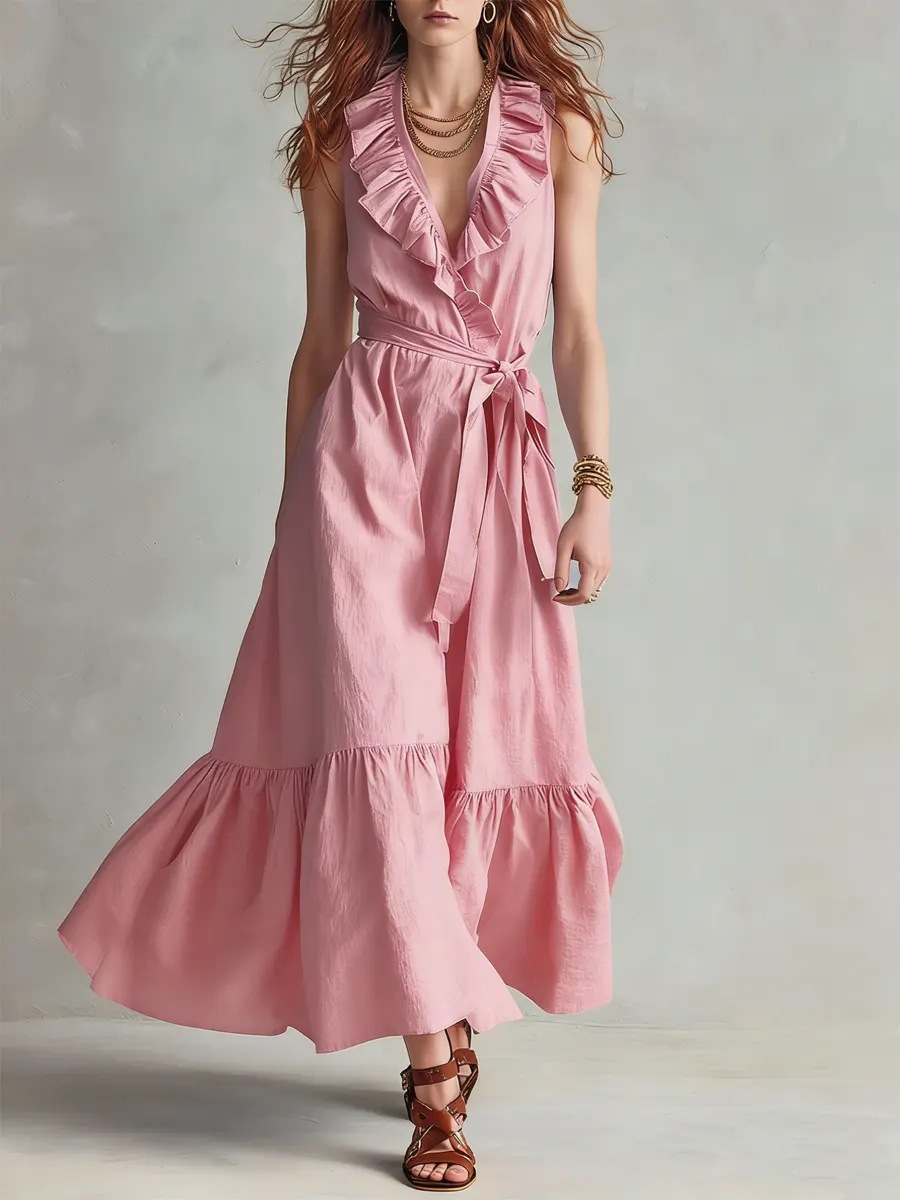 V-neck Sleeveless Lace-Up Panelled Dress is designed for style, comfort, and everyday use.