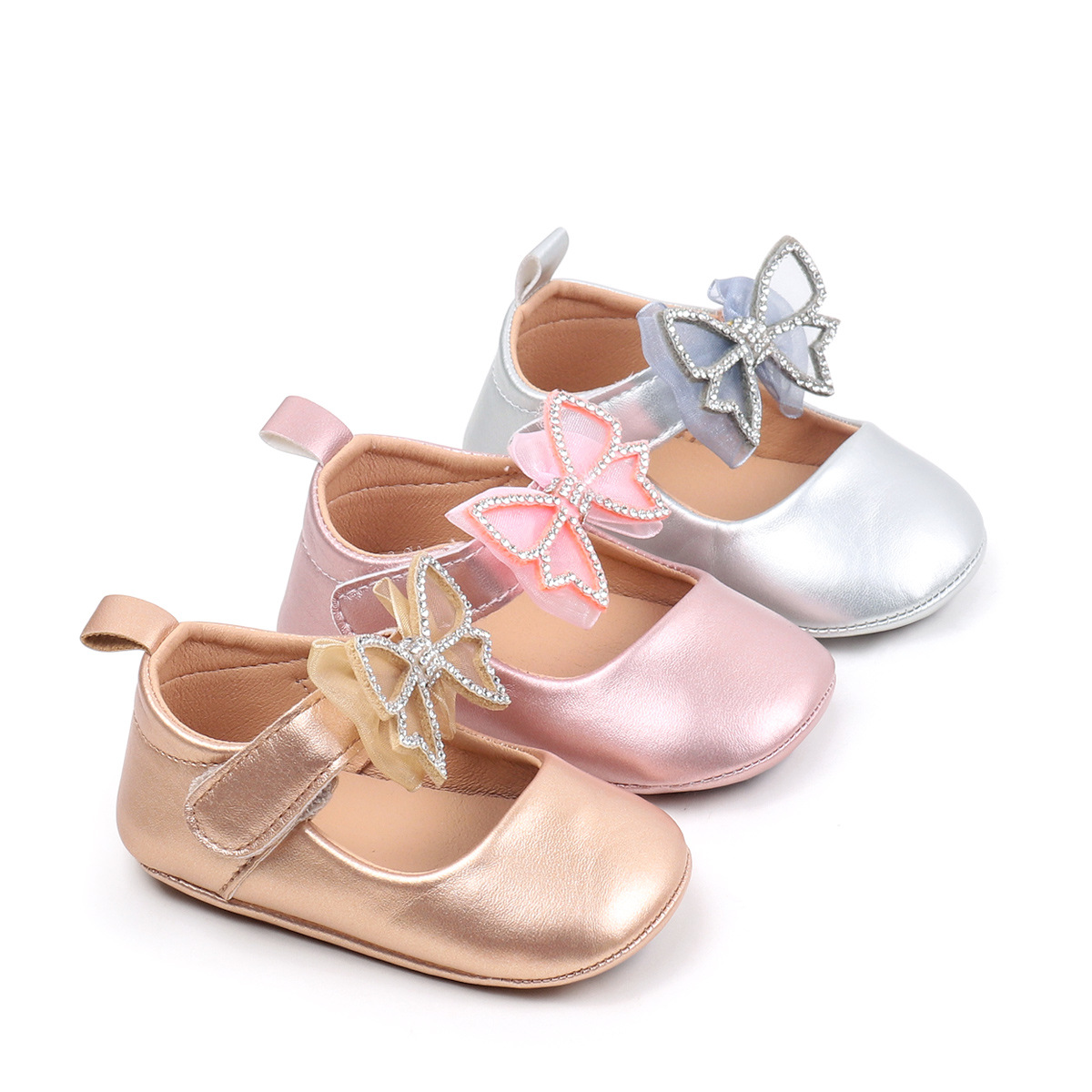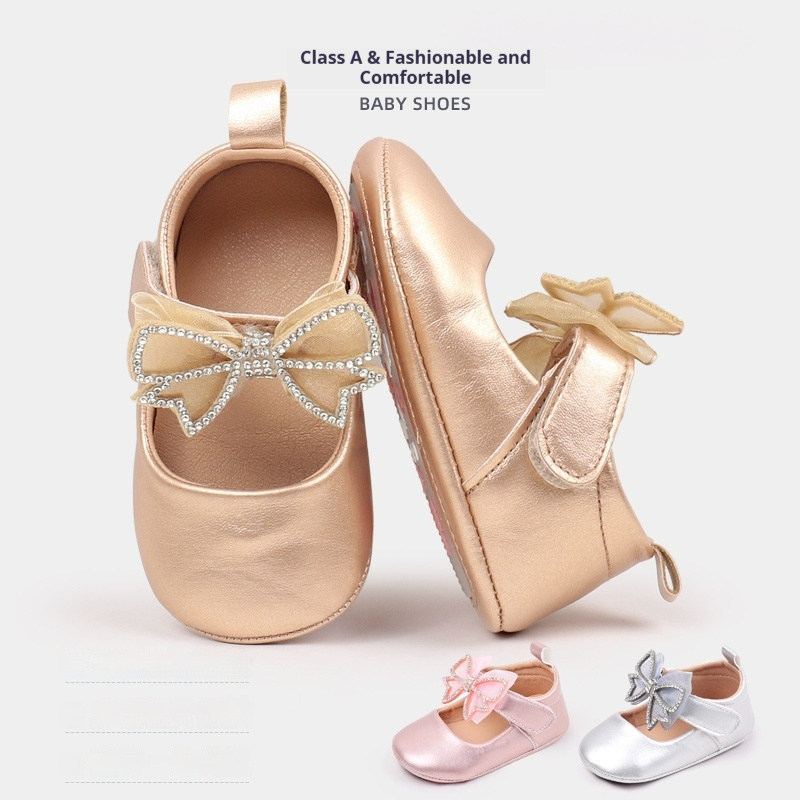 Velcro Bow Princess Shoes With Non-slip Soles For Toddlers