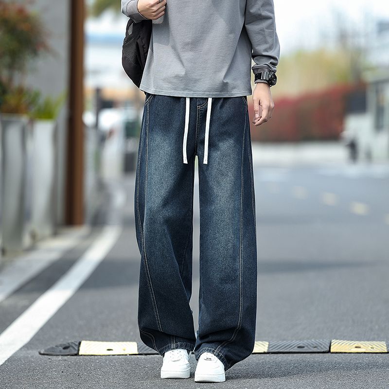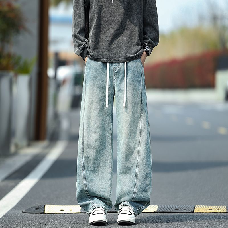 Vintage Washed Drawstring Elastic Waist Jeans, Trendy Loose Straight Leg Pants For Men And Women, All-Match is designed for style, comfort, and everyday use.