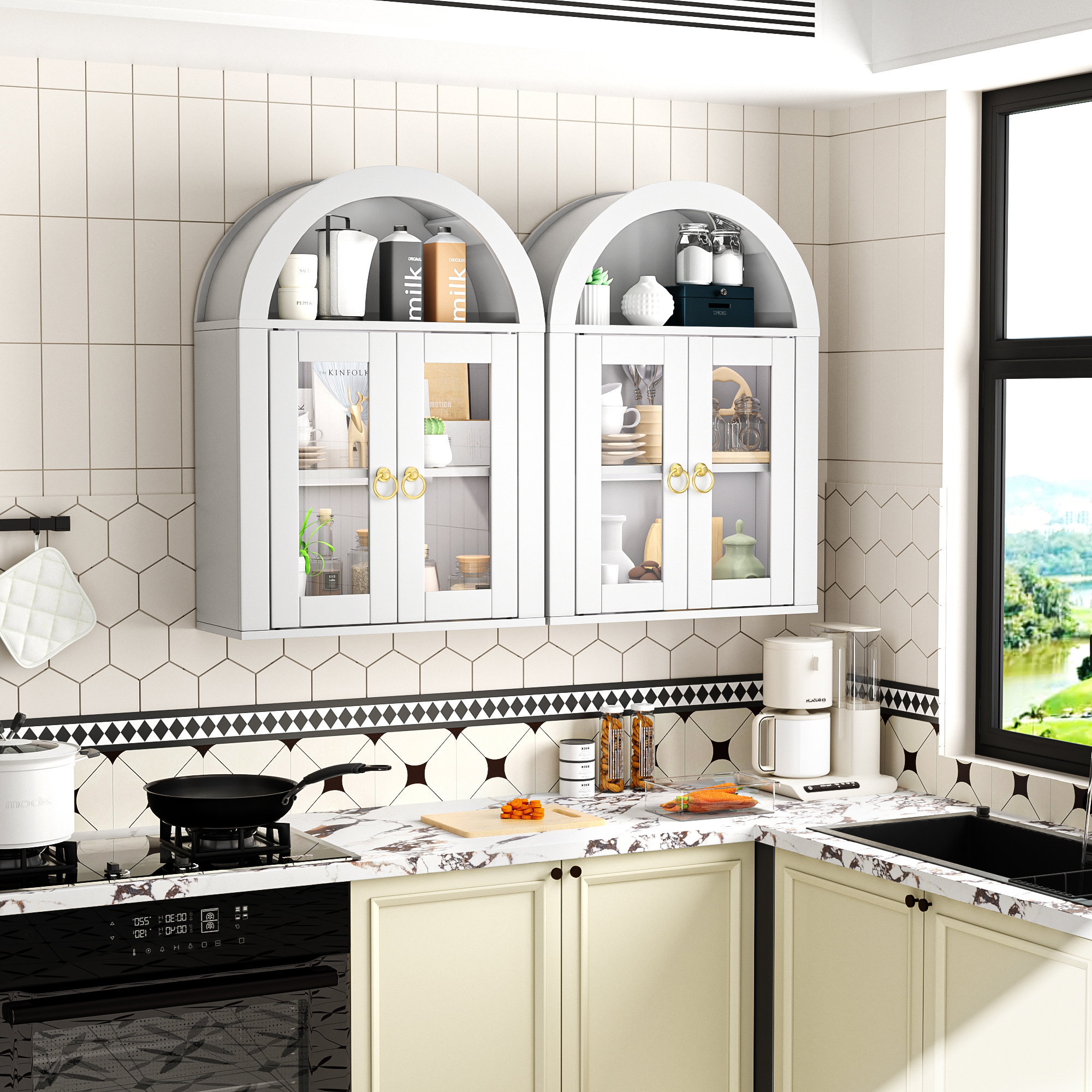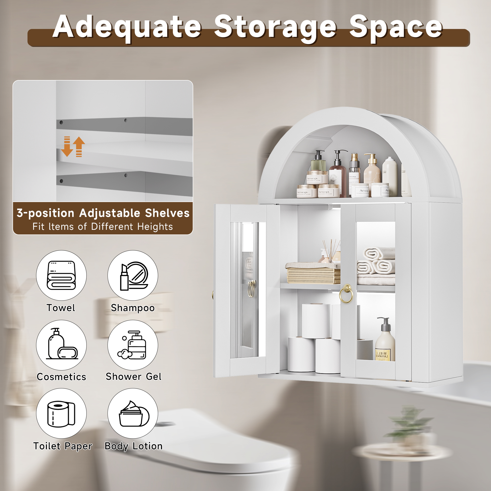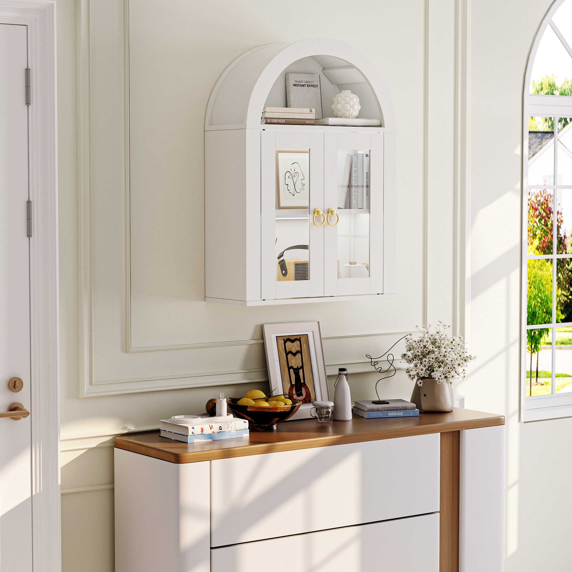 Wall Mounted Arched Cabinet With Glass Doors, Light And Adjustable Shelves For Laundry Room, Bathroom, Kitchen is designed for style, comfort, and everyday use.
