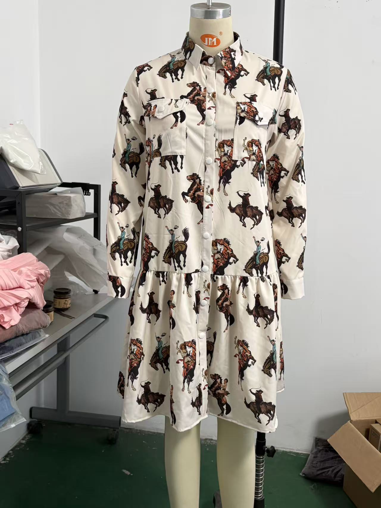 Be the first to review “Western Cowboy-Style Printed Long-Sleeve Dress”