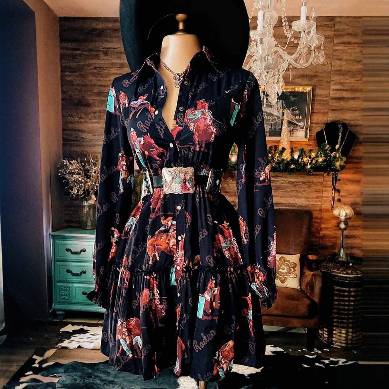 Western Cowboy-Style Printed Long-Sleeve Dress is designed for style, comfort, and everyday use.
