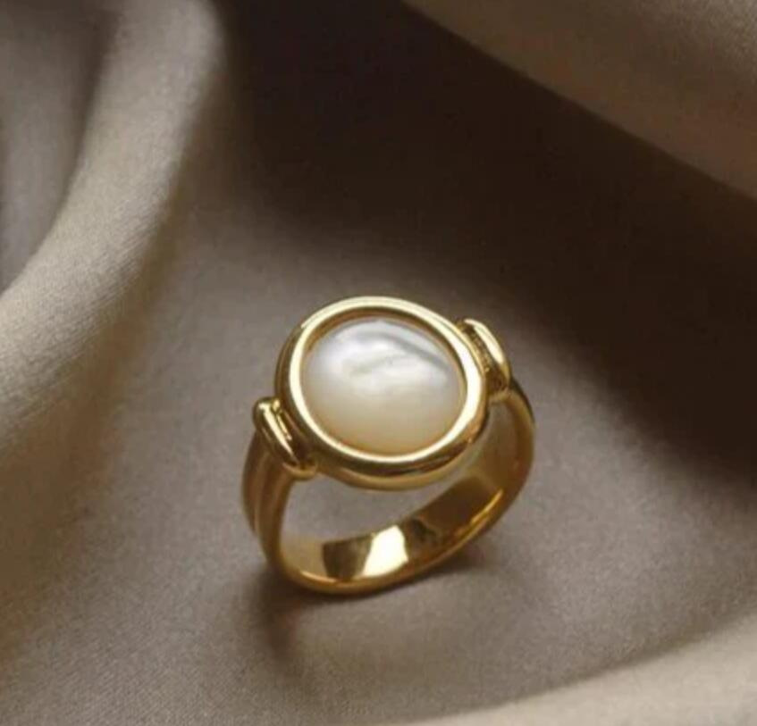 White Shell Electroplated Stainless Steel Ring Jewelry