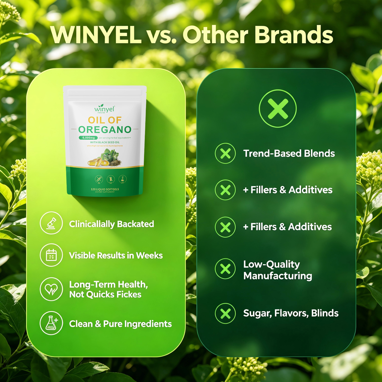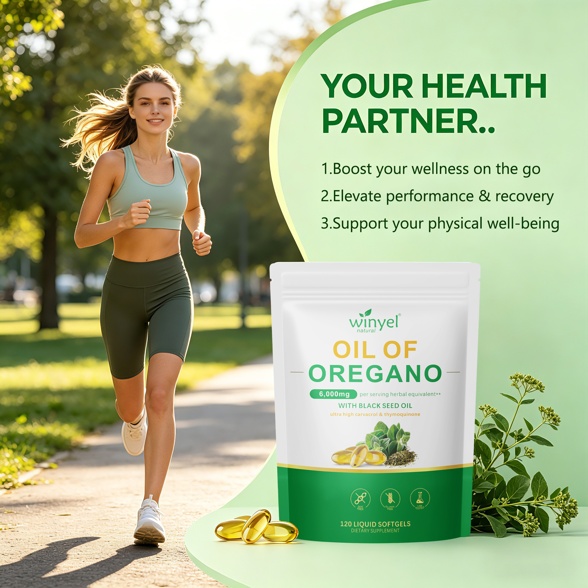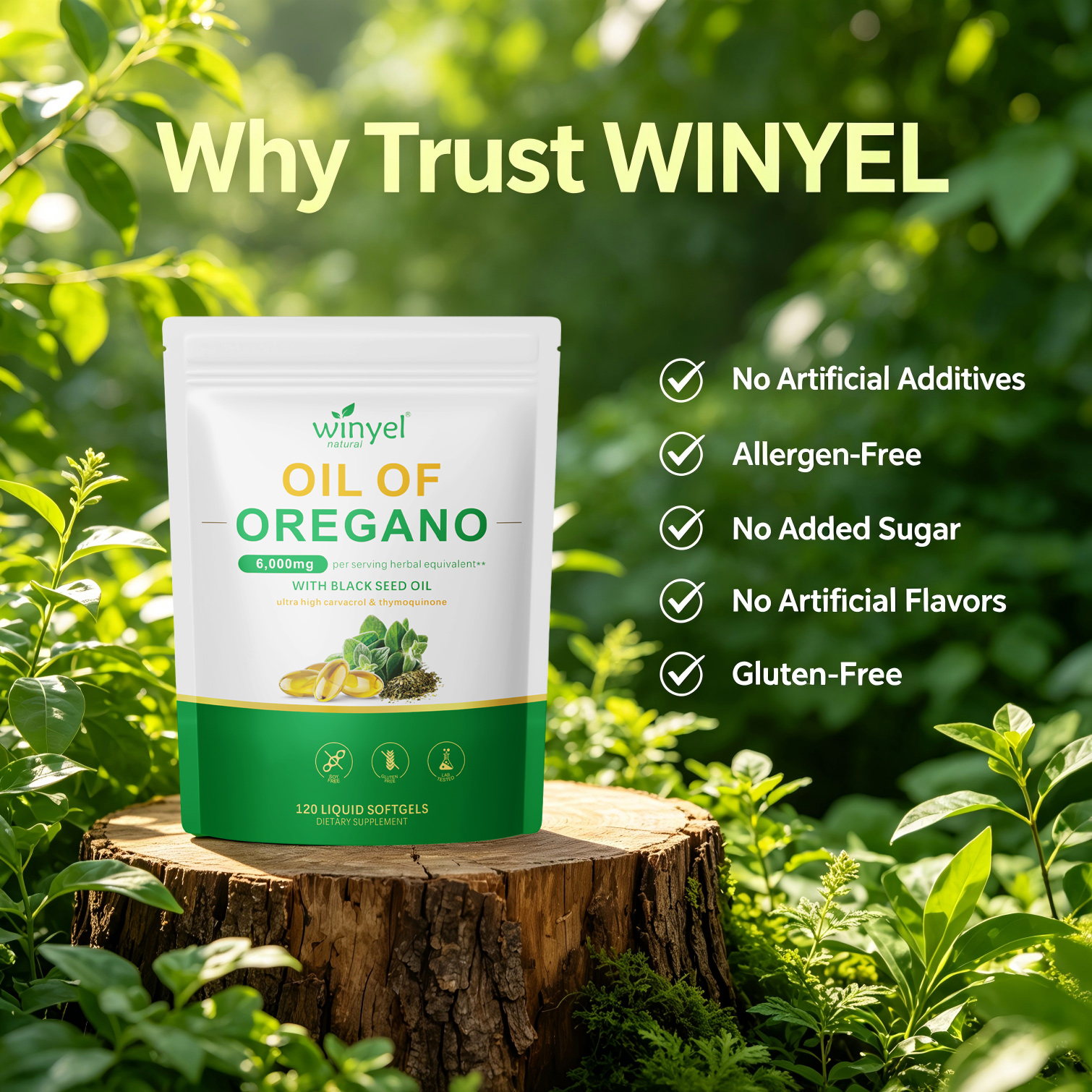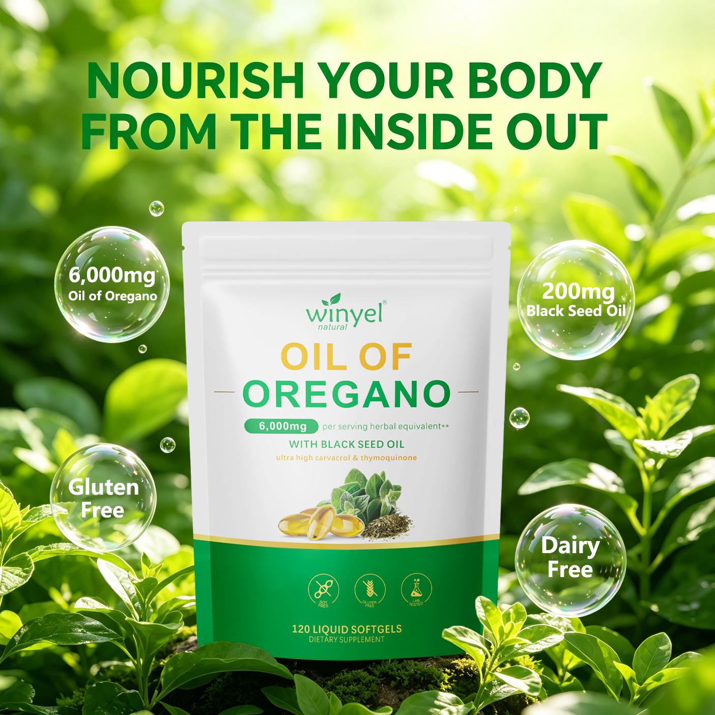 Introducing WINYEL Basil Oil Soft Capsules, a premium herbal supplement crafted to support your overall wellness with a powerful blend of basil oil and black seed oil. • Each serving is formulated with 6000 mg of high-quality basil oil combined with black seed oil, designed to provide targeted support for your immune system and digestive health. Whether you’re looking to maintain a strong immune response or promote healthy digestion, these soft capsules offer a convenient and effective way to incorporate herbal support into your daily routine. • Our soft capsules are gluten-free, making them suitable for those with gluten sensitivities or dietary restrictions. The easy-to-swallow design ensures comfort and convenience, so you can seamlessly integrate them into your morning, afternoon, or evening routine without hassle.