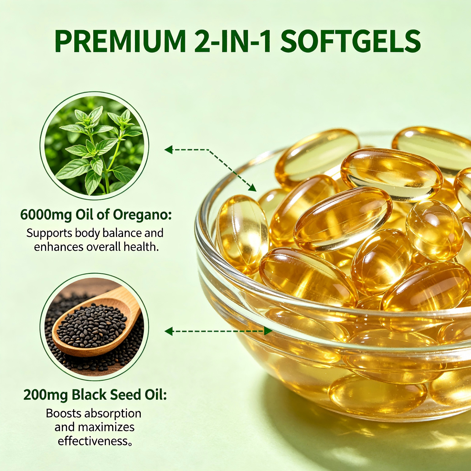 • Each serving is formulated with 6000 mg of high-quality basil oil combined with black seed oil, designed to provide targeted support for your immune system and digestive health. Whether you’re looking to maintain a strong immune response or promote healthy digestion, these soft capsules offer a convenient and effective way to incorporate herbal support into your daily routine.