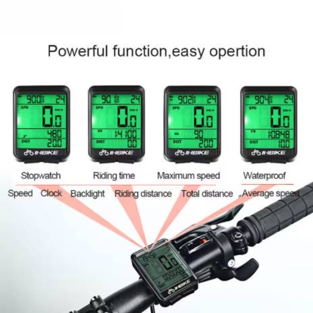 **Product Name: ** Wireless Bicycle Computer**Product Specifications: ** – Screen Size: 60mm * 42mm – Weight: 115g – Backlight Color: White – Waterproof Rating: Daily Waterproof – Application: MTB, Road Bike, Fixed Gear**Product Features: ** – 12 Functions: Clock, EL backlight, Average speed, Riding time, Total distance, Stopwatch, Metric/imperial alternative, Riding speed, Max speed, Riding distance, AUTO ON/OFF – Powerful waterproof design, easy to operate – LCD screen display – Multi-functional, simple operation**Package Contents: ** – Computer * 1 – Nylon Belts * 7 – Shake-Absorbing Sponge Pad * 2 – Rubber Loop * 1 – Wireless Base * 1 – Button Cell * 1 – Strong Magnet * 1 – Wireless Launcher * 1 – English Version Instruction * 1